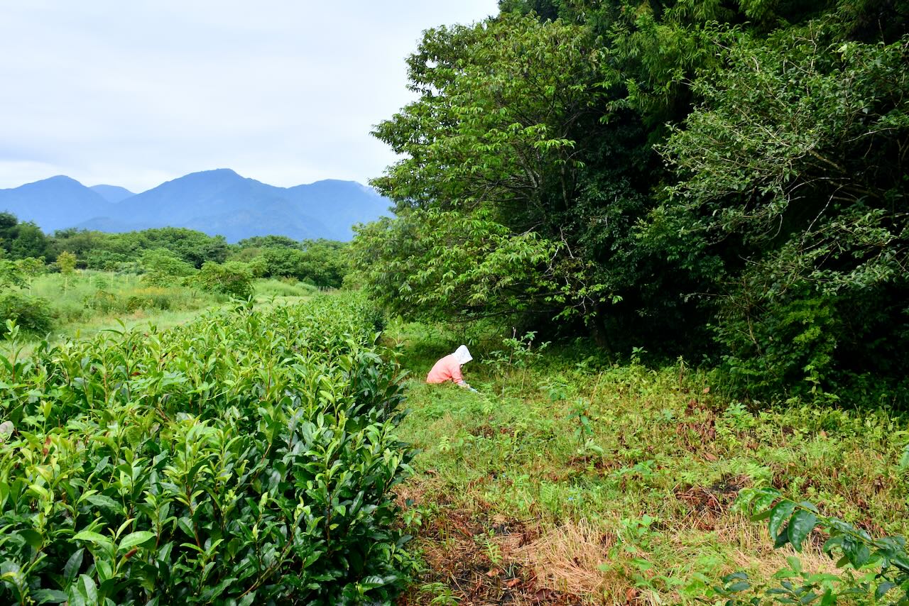 14日は宝山の茶の木の列に沿って野菜の種を蒔きました。