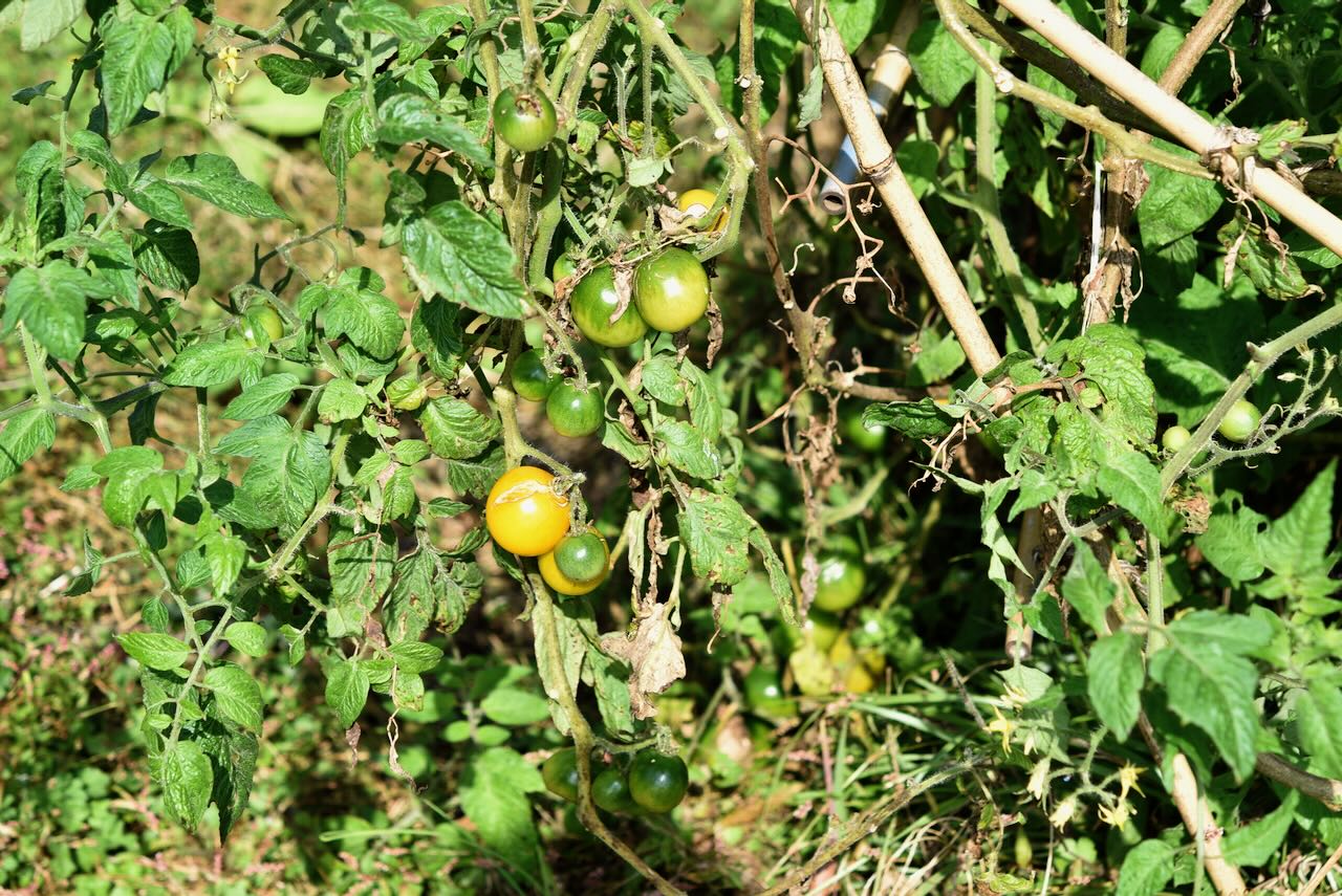 黄色いトマトはまだまだ青い実をつけています。