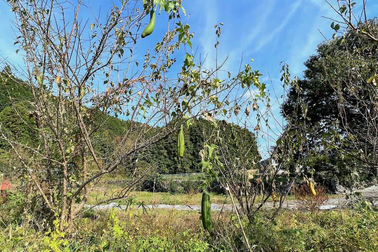 もう一度、木からぶら下がったヘチマとモウイです。この風景を見たかったので嬉しいです。