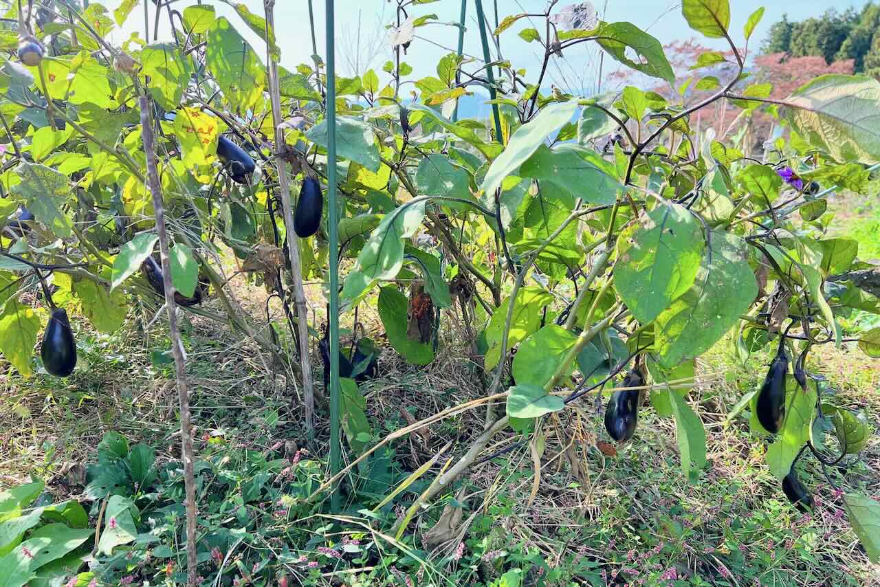 2段目の仲間の畝にはナスがまだたくさん出来ていました。