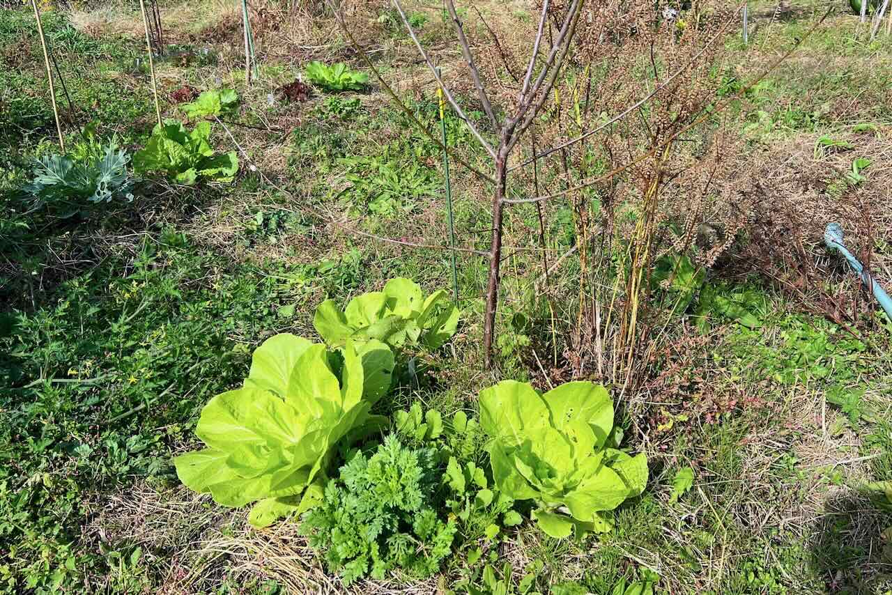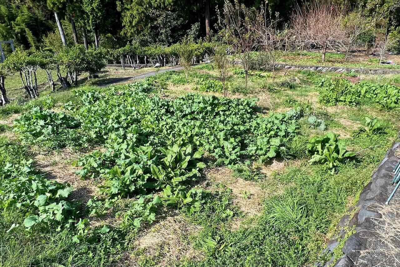それからこぼれ種から育った、カキナや白菜、小松菜、大根を見るとみんな元気です。親の遺伝子を受け継いでより賢く育っているのではと思います。5段目の畑はほとんどの野菜がこぼれ種で何もしていないのに毎年育ち、素晴らしいと思います。このやり方をどんどんやっていきたいと思います。