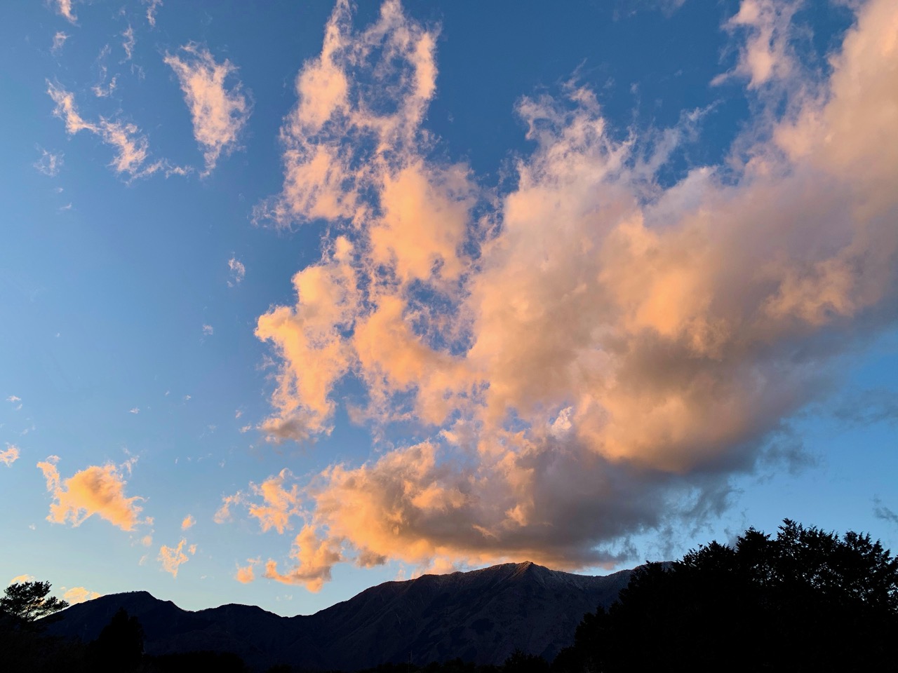 西の空に大きな雲のかたまりがありました。だんだん暮れて行きます。