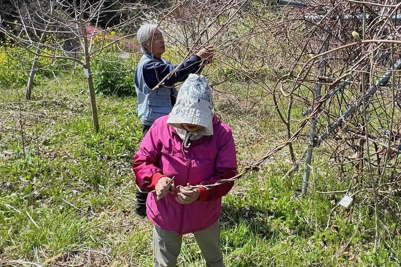 女性陣4人が帰ろうとしたら、安田さんがまだ剪定していました。もう少ししてから帰ると言いました。菜っぱを車のそばに置いて行きました。ここの棚は細く枯れたツルが多かったです。太いものもたくさんあるので心配していませんが、やはり毎年剪定した方が良いです。もう剪定は慣れたので、来年も皆んなに声をかけてやります。