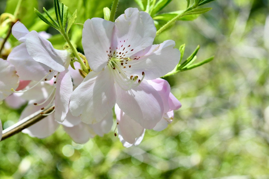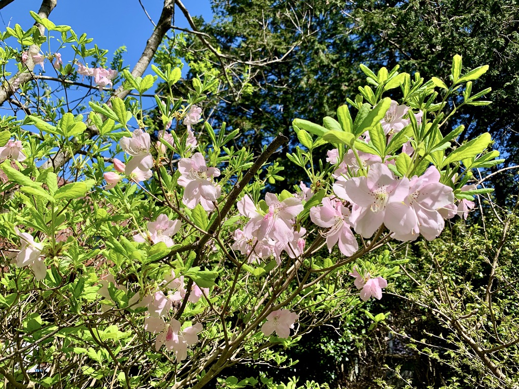 すぐ側にツツジが咲いていました。淡い薄ピンク色です。