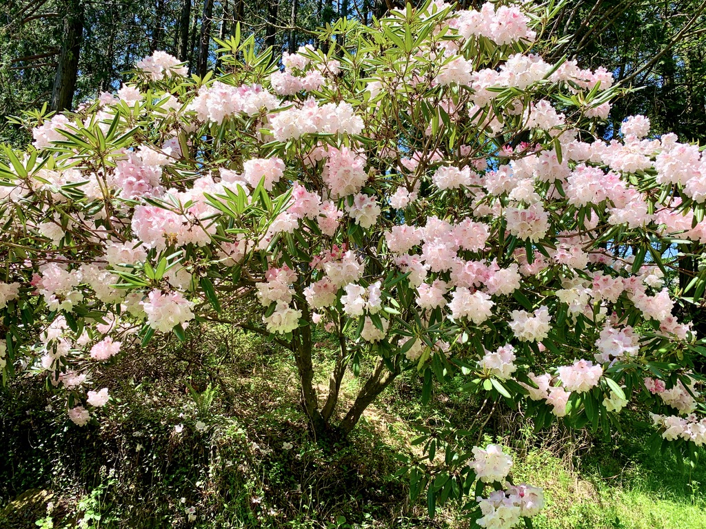 昼休みに撮影していると、農園チームの Yukinoさんがカメラを持って出て来ました。どこに何があるか詳しいので、「シャクナゲが満開だよ」と教えてくれました。