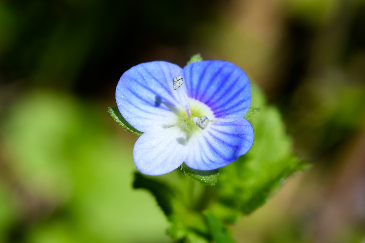 そして私の大好きなキュウリグサです。なんと花の大きさは2mmです。気づく人は少ないと思います。綺麗なブルーの花びらに囲まれ、真ん中に黄色い縁取りをした明るい顔があるように見えます。素晴らしい色合いです。