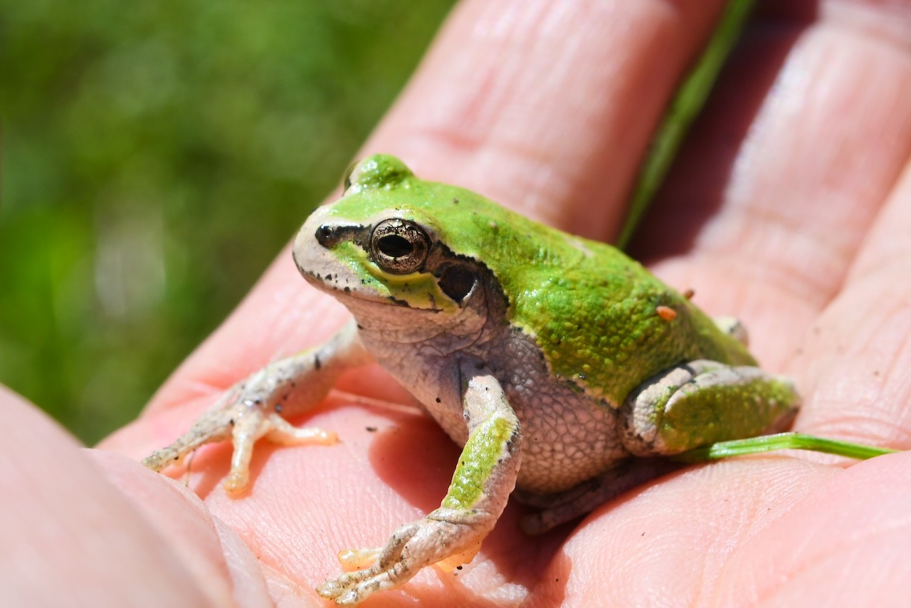 おお〜〜、アマガエルさんです。こんにちは! 撮影の為、手に持ってしまいごめんなさい。