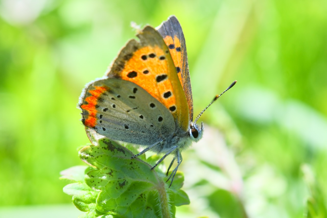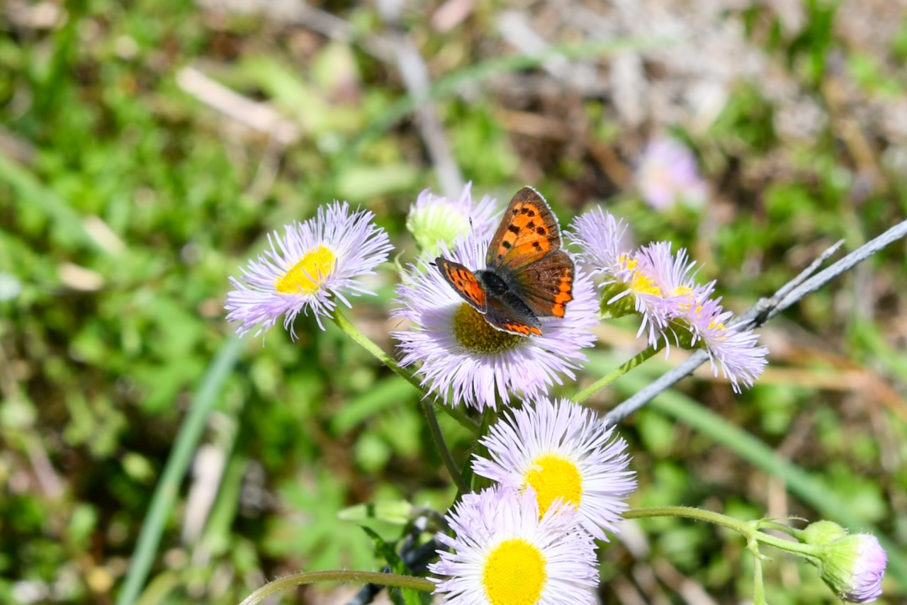 前回来た時に、遠くで飛んでいる姿を見ましたが、やっと近くに止まってくれました。ベニシジミです。
