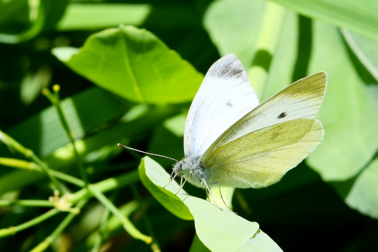 モンシロチョウの大きさは3〜4cmです。モンシロチョウが地味に見えます。
