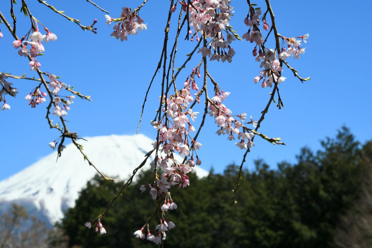 富士河口湖町の富士山です。まだ雪がたくさん残っています。