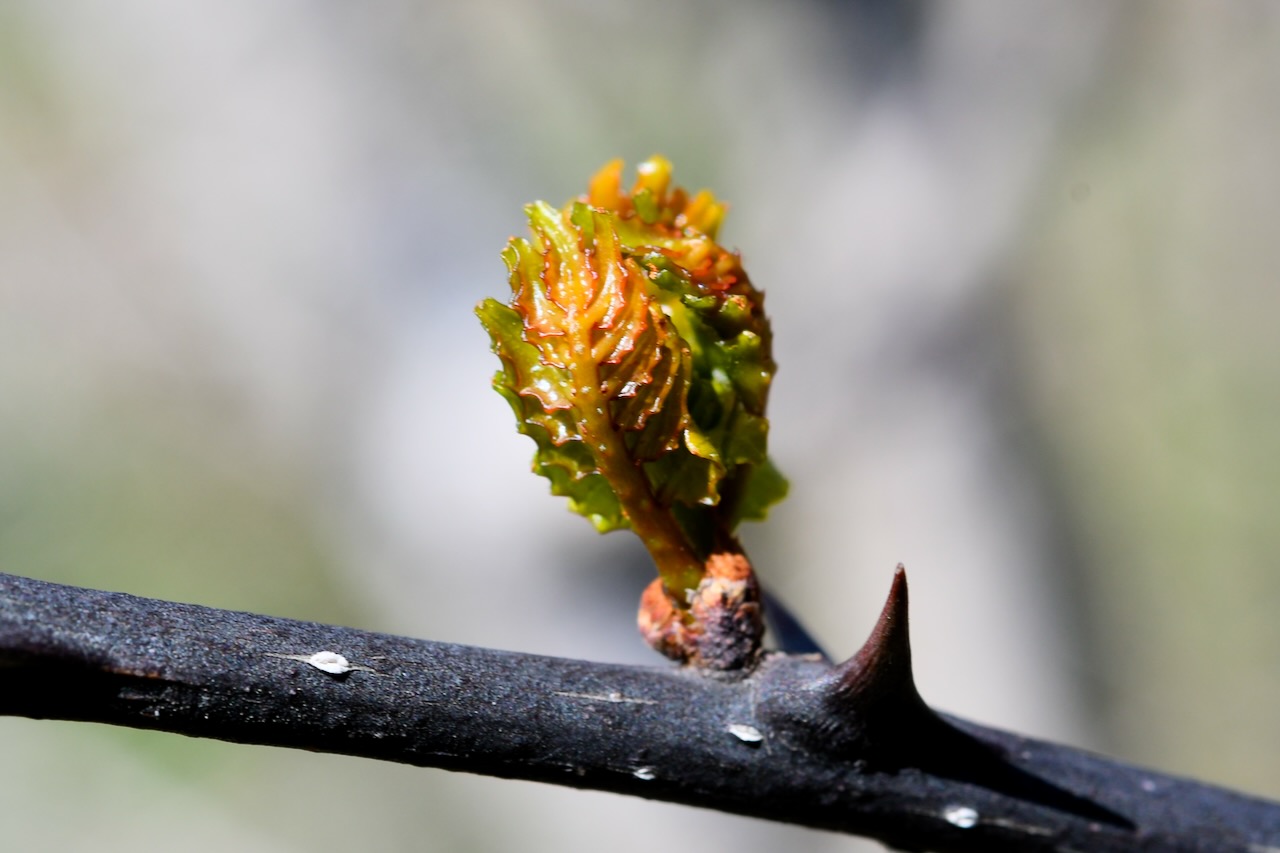 これは何の新芽だと思いますか。サンショウの新芽です。早く若葉でサンショウ飯を作って食べたいです! それにしても立派なトゲです。サンショウのトゲは痛いです。