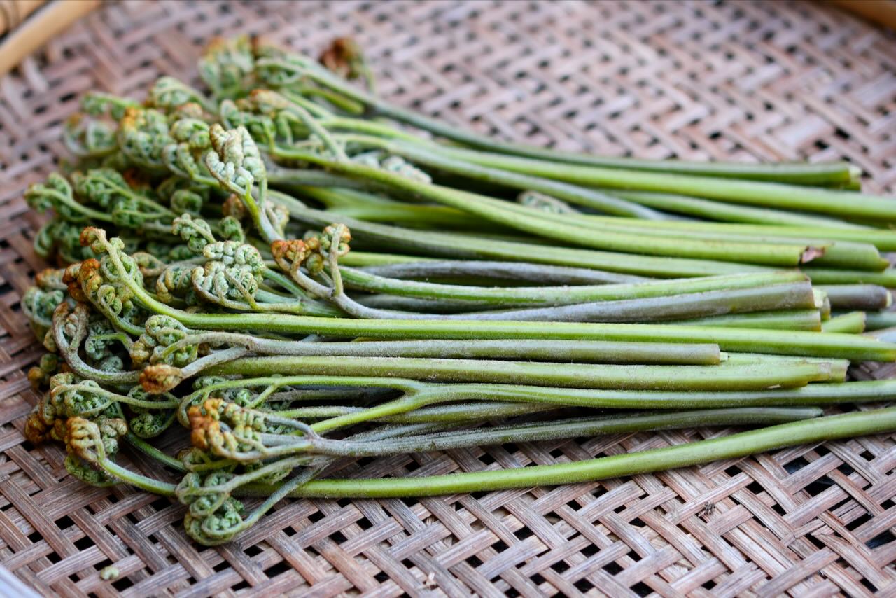 日当たりの良い場所にワラビが出ていました。熱いお湯に灰を入れ一晩つけました。暖かい蕎麦に乗せて山菜蕎麦にしていただきました。と〜〜っても美味しかったです!