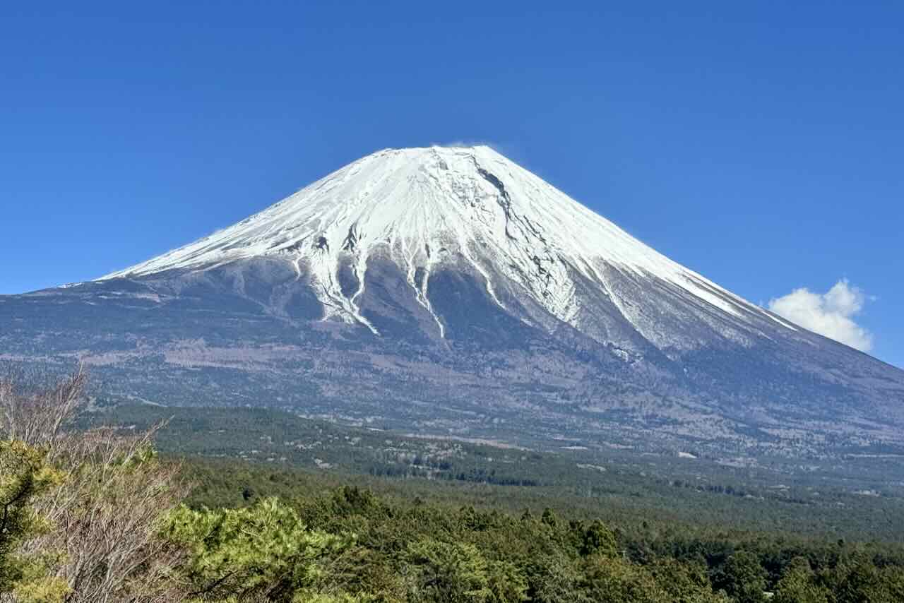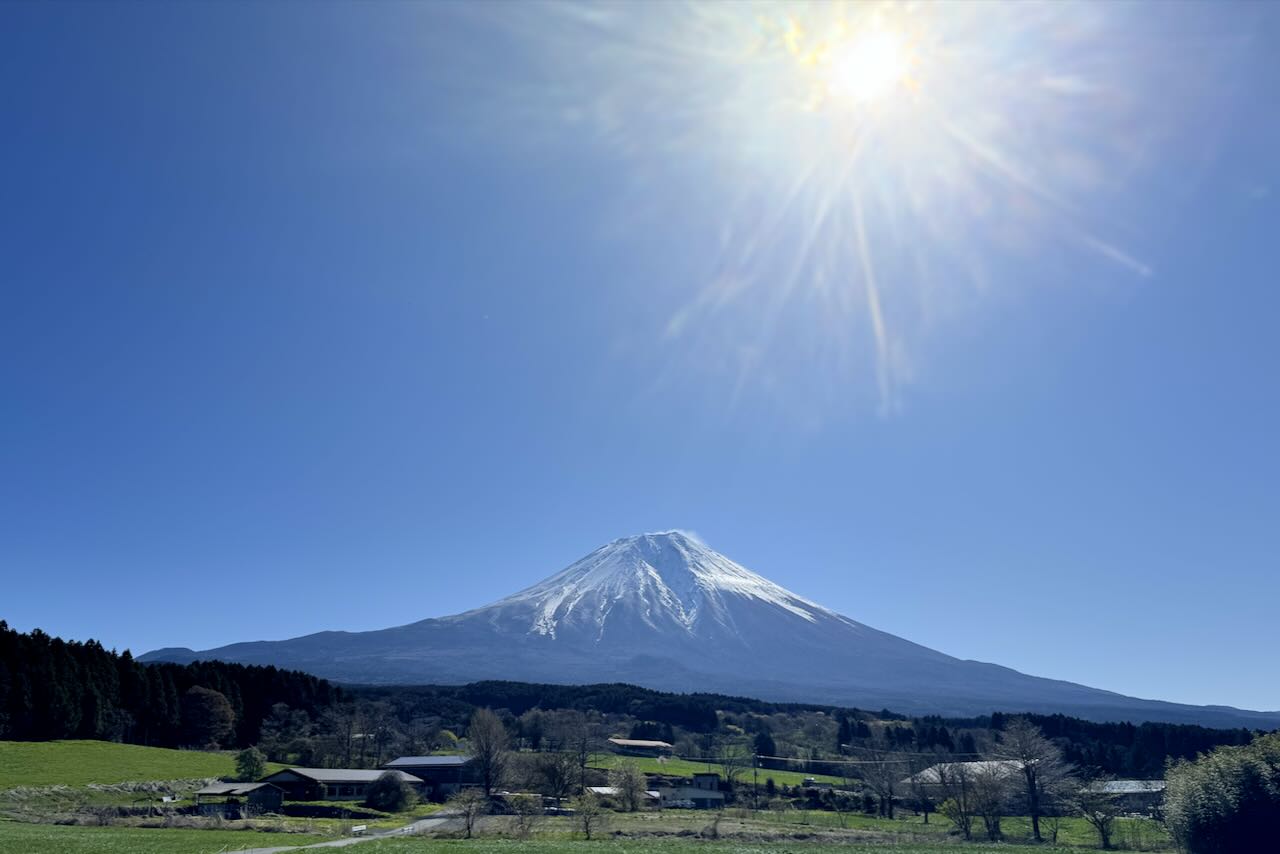 16日、富士聖地から車で4分南下した場所からの富士山です。精進川の畑に向かっています。