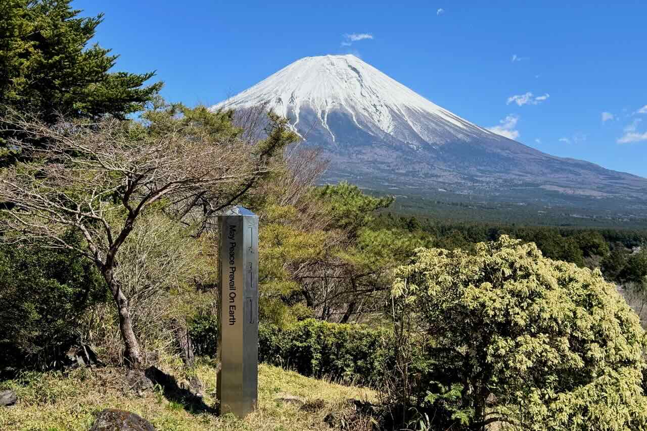 大きな太いピースポールと富士山です。