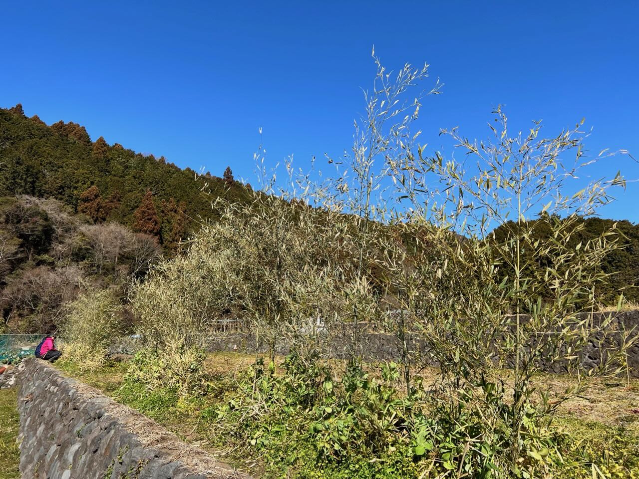 昨日2月1日、精進川の畑へ行きました。4段目の畑に植えたスナップエンドウが伸びているので、竹を刺して支柱にしました。まだ小さい時は短い笹を刺していましたが間に合わなくなりました。