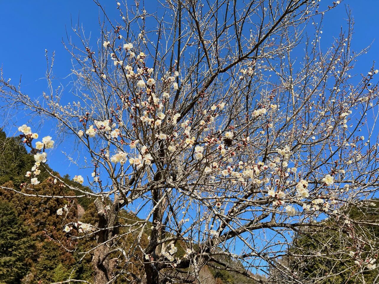 樹齢80年の梅の蕾がどんどん開いています。全部実になってほしいですが、こればかりはわかりません。植物に詳しいYさんが言ってましたが、ある年ムベにたくさんの花が咲いて楽しみにしていたけれど実際に実になったのは2〜3個で驚いた、と言うことです。