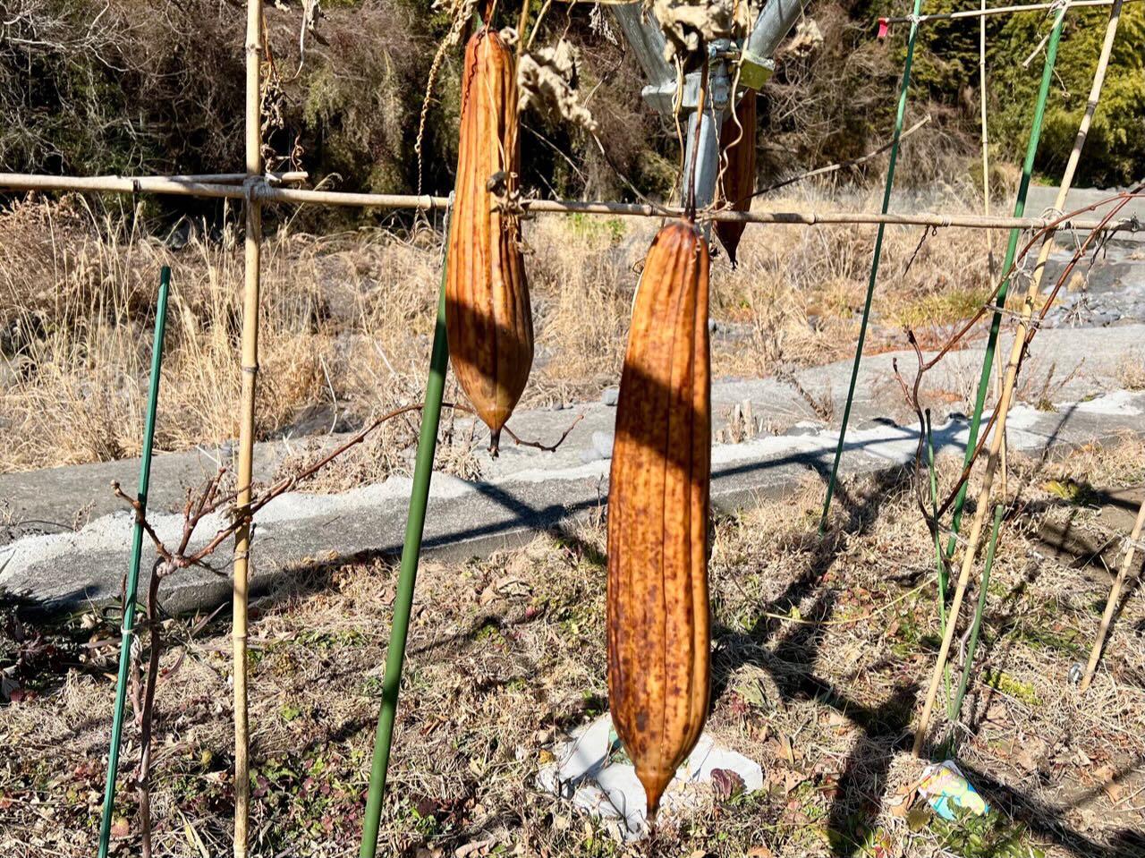 ヘチマは小さめの子は乾いていたので皆んなで持ち帰りました。でも大きな子はまだです。この子のサイズは44cmでした。