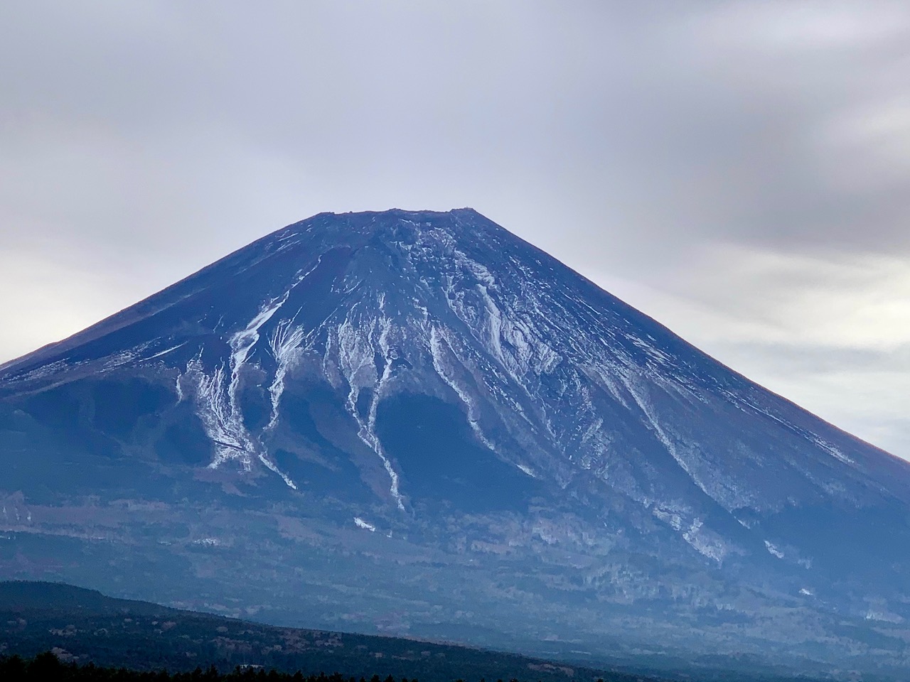 やはり雪が少ないです。いつもなら朝は逆光で富士山が黒く写ってしまいますが、曇り空なのでハッキリと見えます。