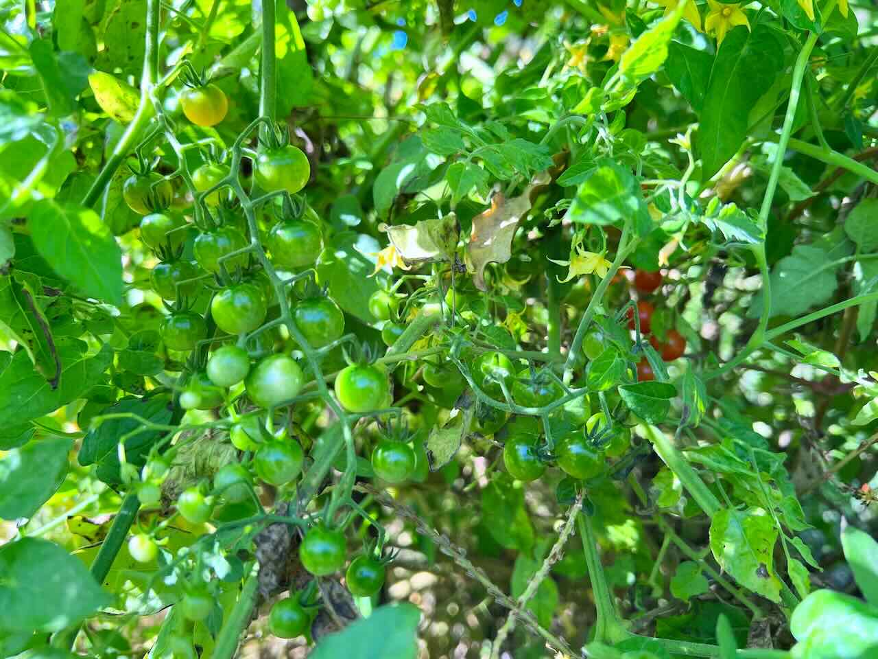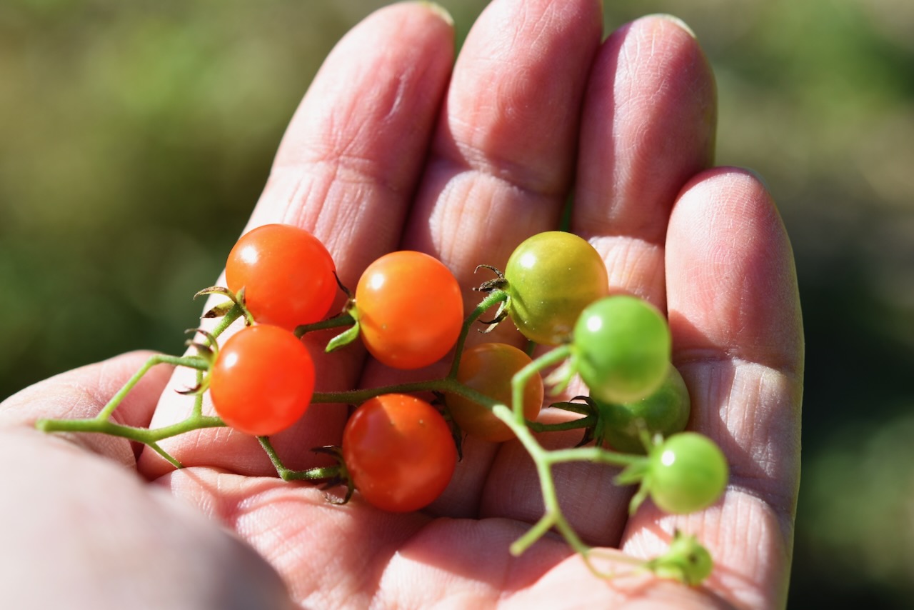奥の方にある赤いみです。このトマトの味はとても濃厚で野生味にあふれています。