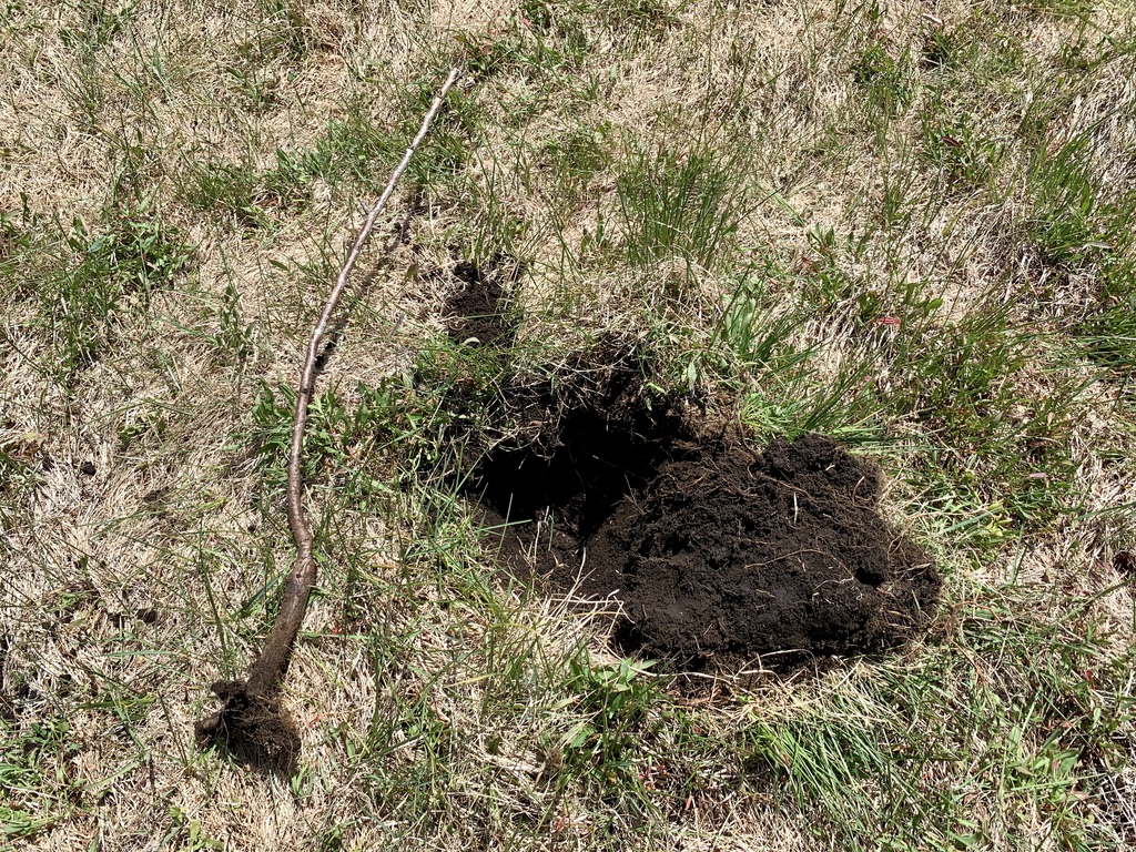 モグラです!! 果樹の苗木の周りが穴だらけです。