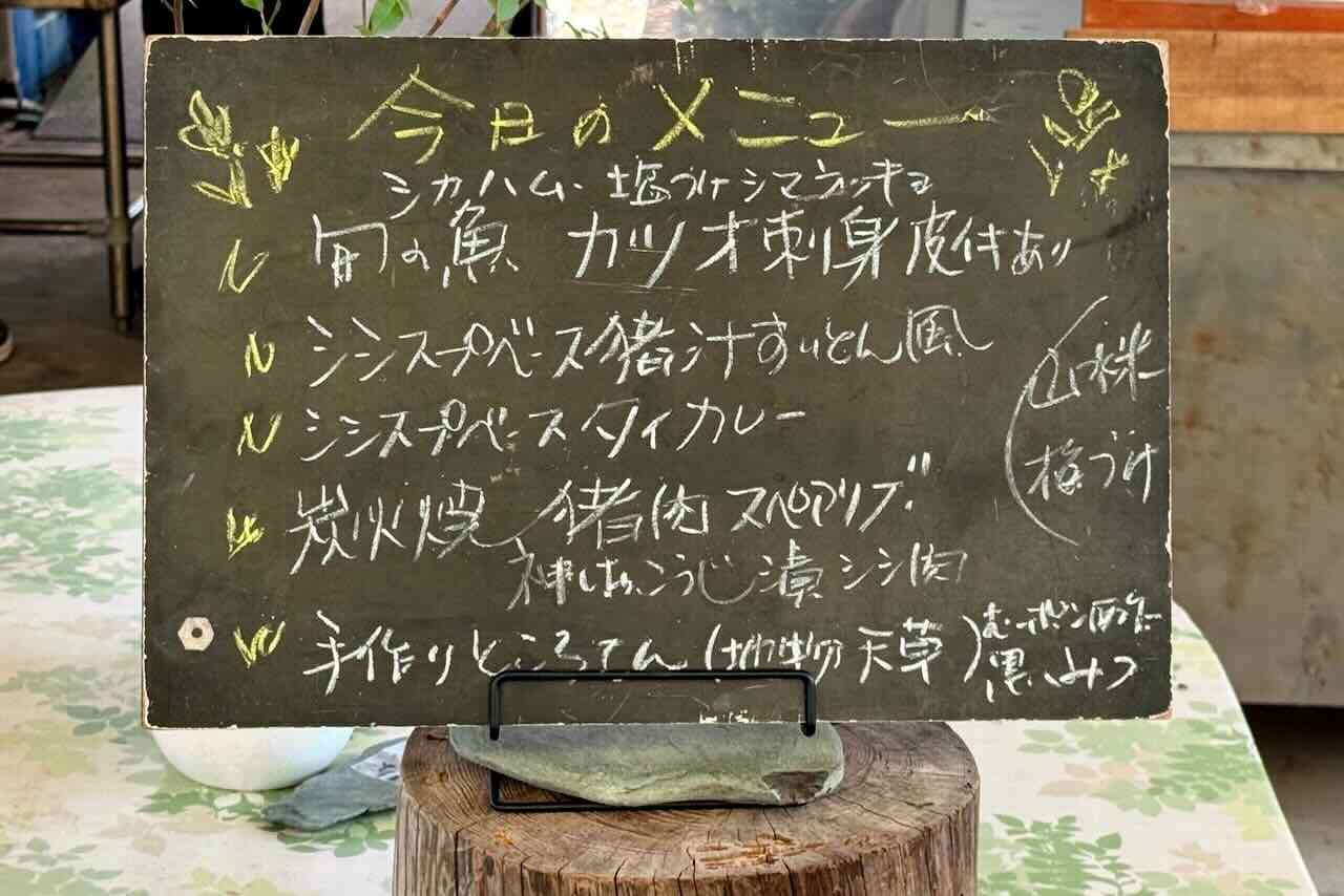 畑から帰って来ました。昼食のメニューです。