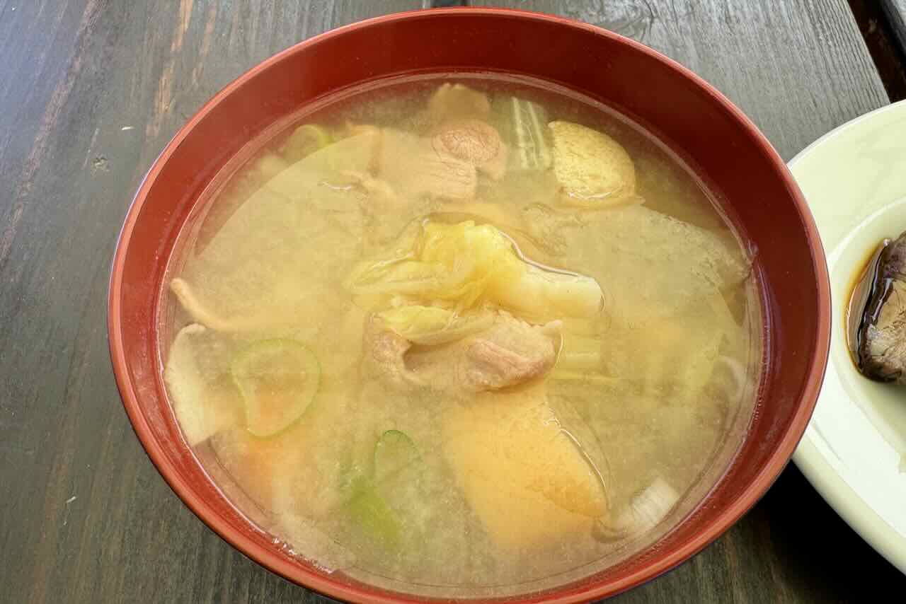 猪汁すいとん風。皆さんは本格タイカレーを汗をかきながら美味しそうに食べていました。私は辛いのは苦手なので食べませんでした。どの料理も美味しかったです。他にスタッフの川崎さん手作りところてんと郁ちゃん手作りの梅干しも美味しかったです。最後にいただいた由紀枝ちゃんが作った牛乳と梅シロップで作ったラッシーも美味しかったです。作り方を聞いたので、帰ってから毎日作って飲んでいます。