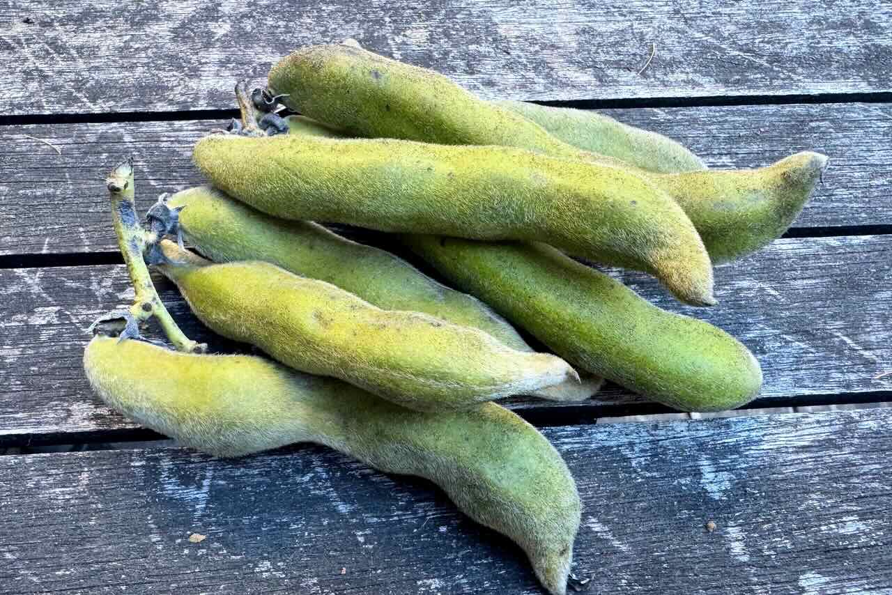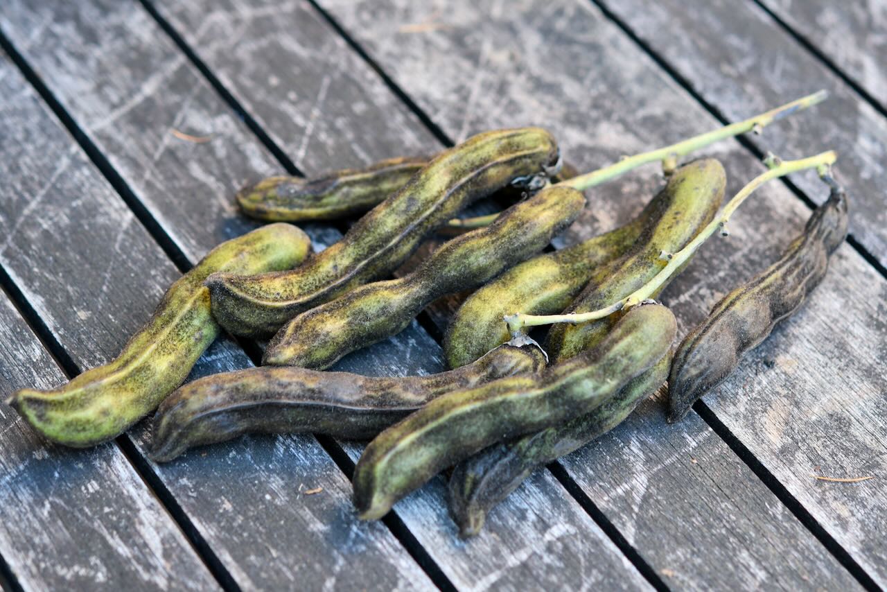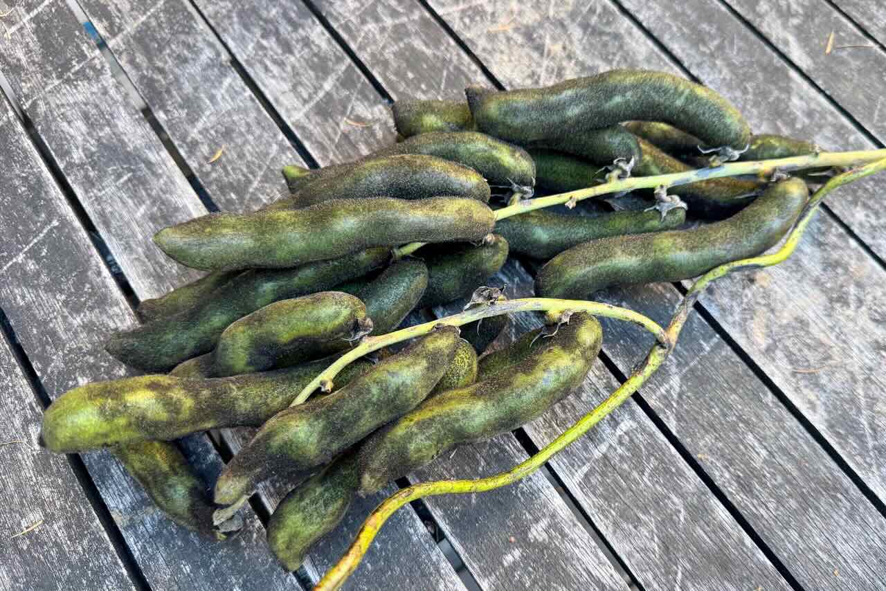 ムクナ豆ですが、まだ柔らかく若い豆と固く乾燥した豆まで混在しています。