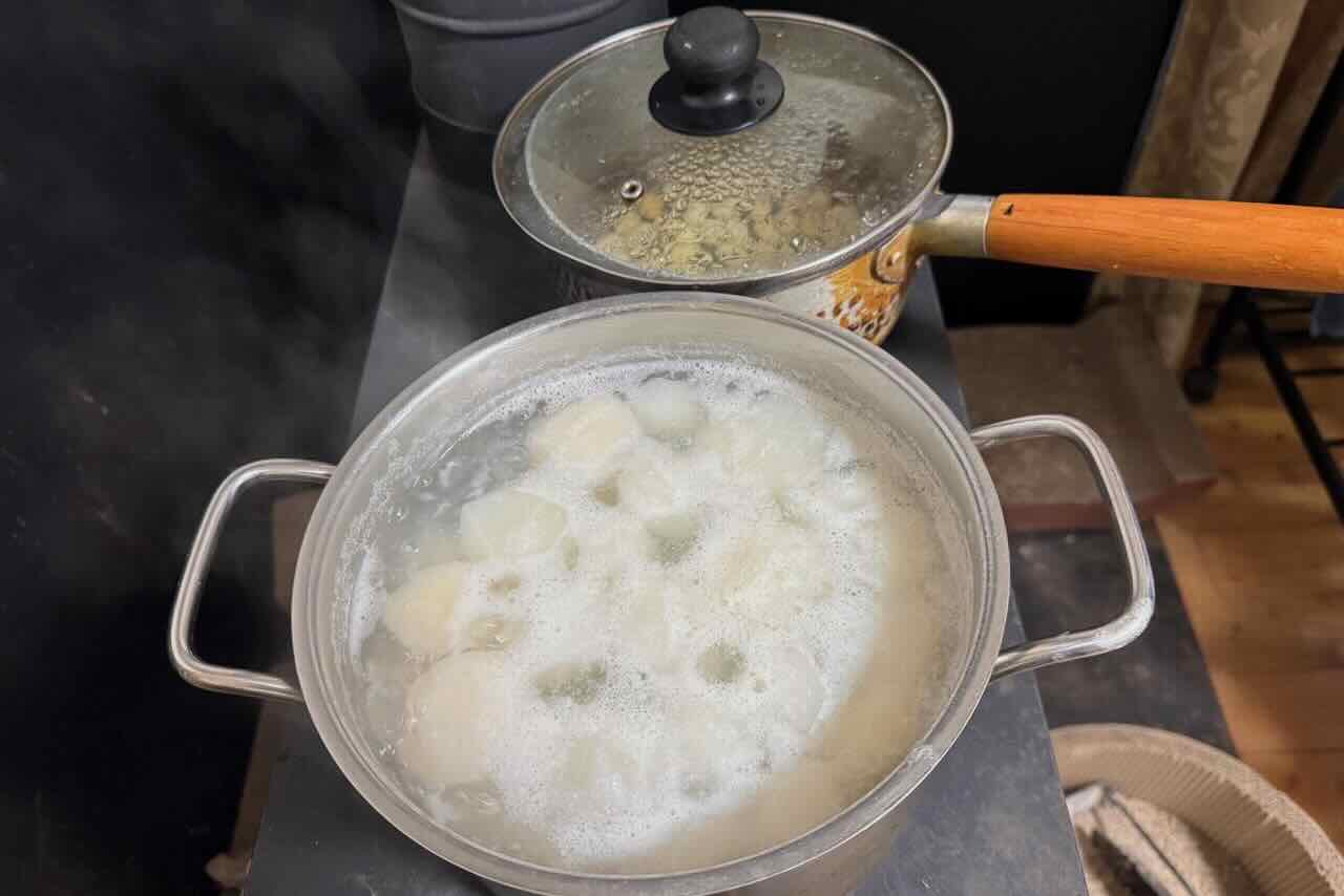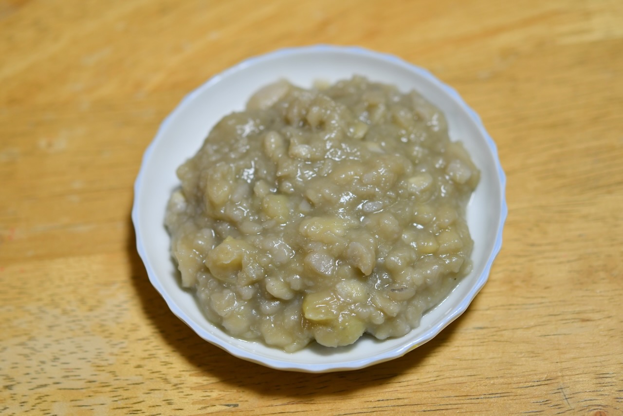 森さんは、そら豆のように焼いて食べると美味しいと教えてくれたので、カラカラの黒い豆以外は焼いて食べてみましたが、ホクホクして美味しかったです。長めに焼くと豆がしっとりして、これも美味しかったです。森さんがアンコにしても美味しいと言ったので、少しだけやってみました。