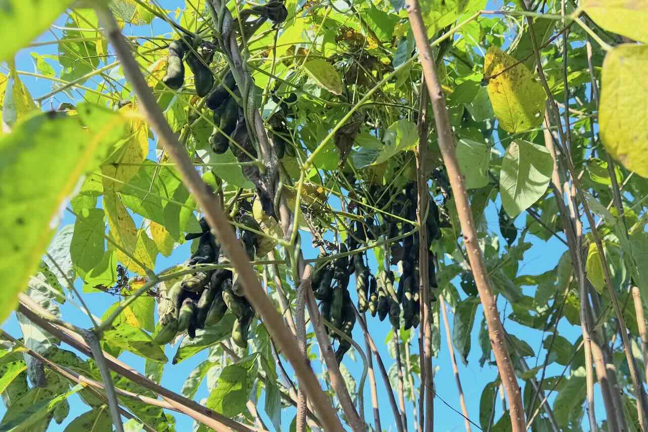 塩谷さんが余ったムクナ豆を木のそばに植えたものが立派に育っています。収穫が大変そうだけど、蔓性植物はやはり木に巻き付くのが大好きなのですね。ムクナ豆を教えてくれた森さんも初めて見て、素晴らしいと喜んでいました。