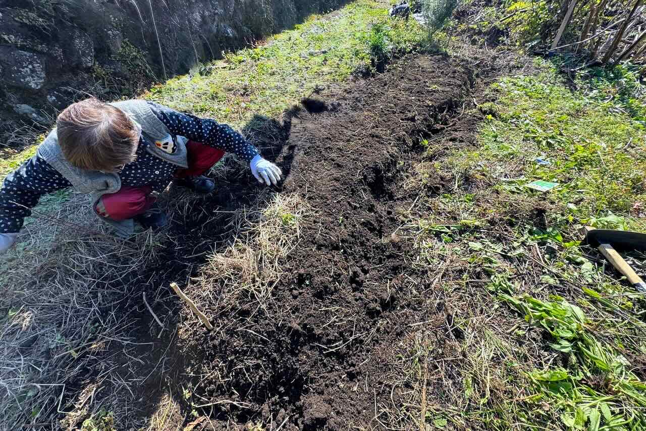 短いですが畝を作って種を蒔きました。次回、この畝を長く伸ばしていきます。