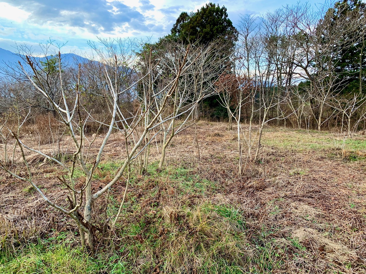 このたくさんある木は、オニグルミの幼木です。少し前までカヤや雑草に覆われていましたが、地元の協生農法仲間が、手ガマで刈ってくれました。彼女達は白光真宏会の会員ではありませんが、志を同じくする初期メンバーです。こういう仲間がいると本当に心強いですし有難いです。SOPPと感謝祭の協生ブースを手伝ってくれています。 しかしクルミの木が自然と増えていますが、きっとリスが実を埋めたまま忘れたのでしょうね。