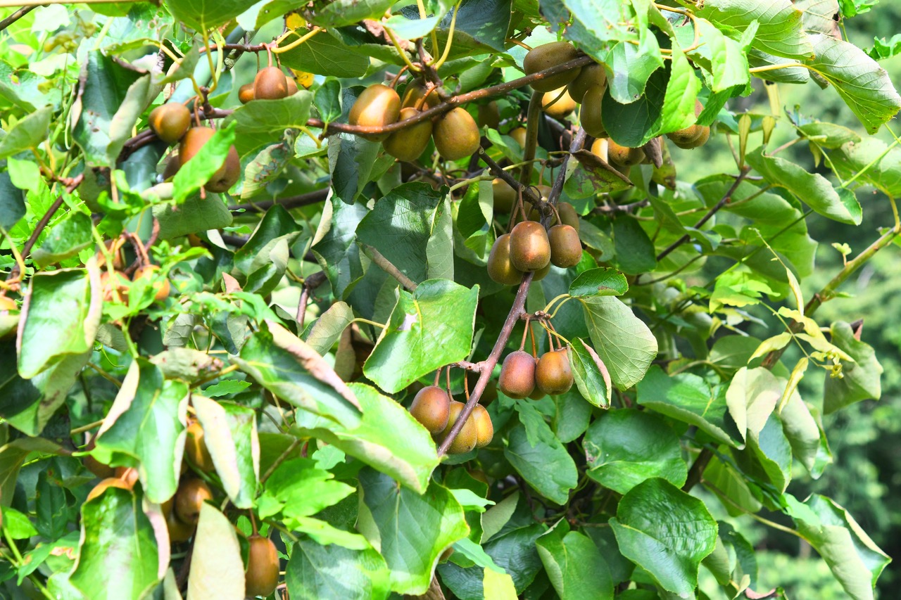 梅の古木がある畑のキウイです。だいぶ色づいてきましたがまだ固いです。