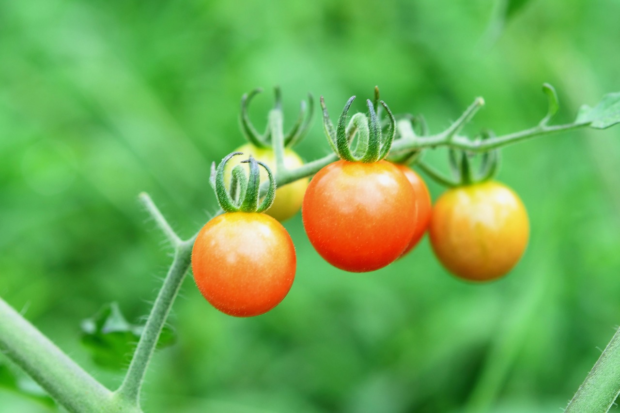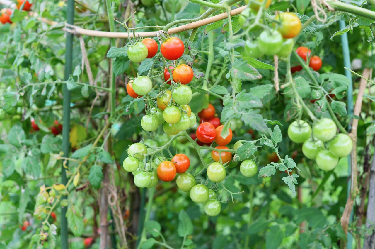 1段目は女性陣共有の畑です。中玉トマトが一部色づいています。