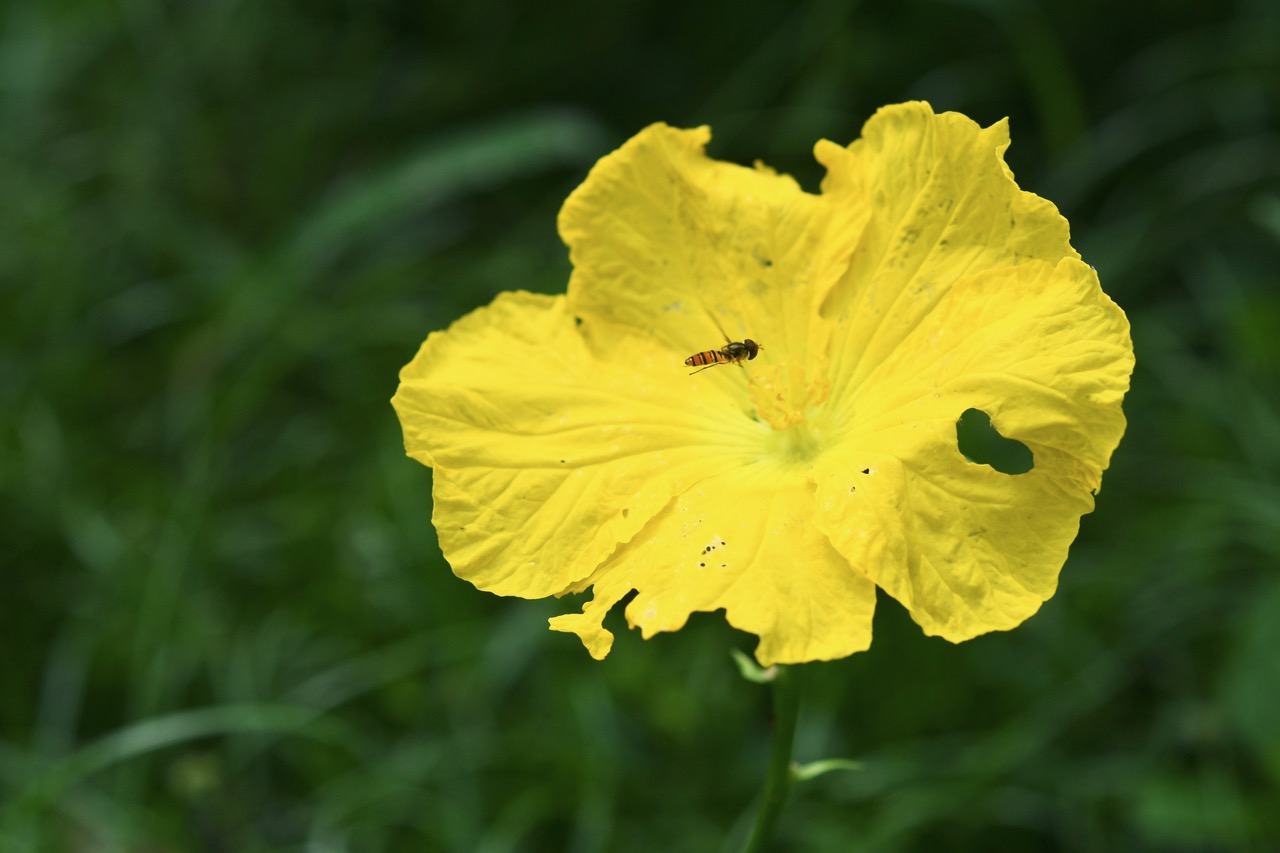 側に竹で支柱をしたヘチマはこじんまりしていますが、大きな実がなっていました。