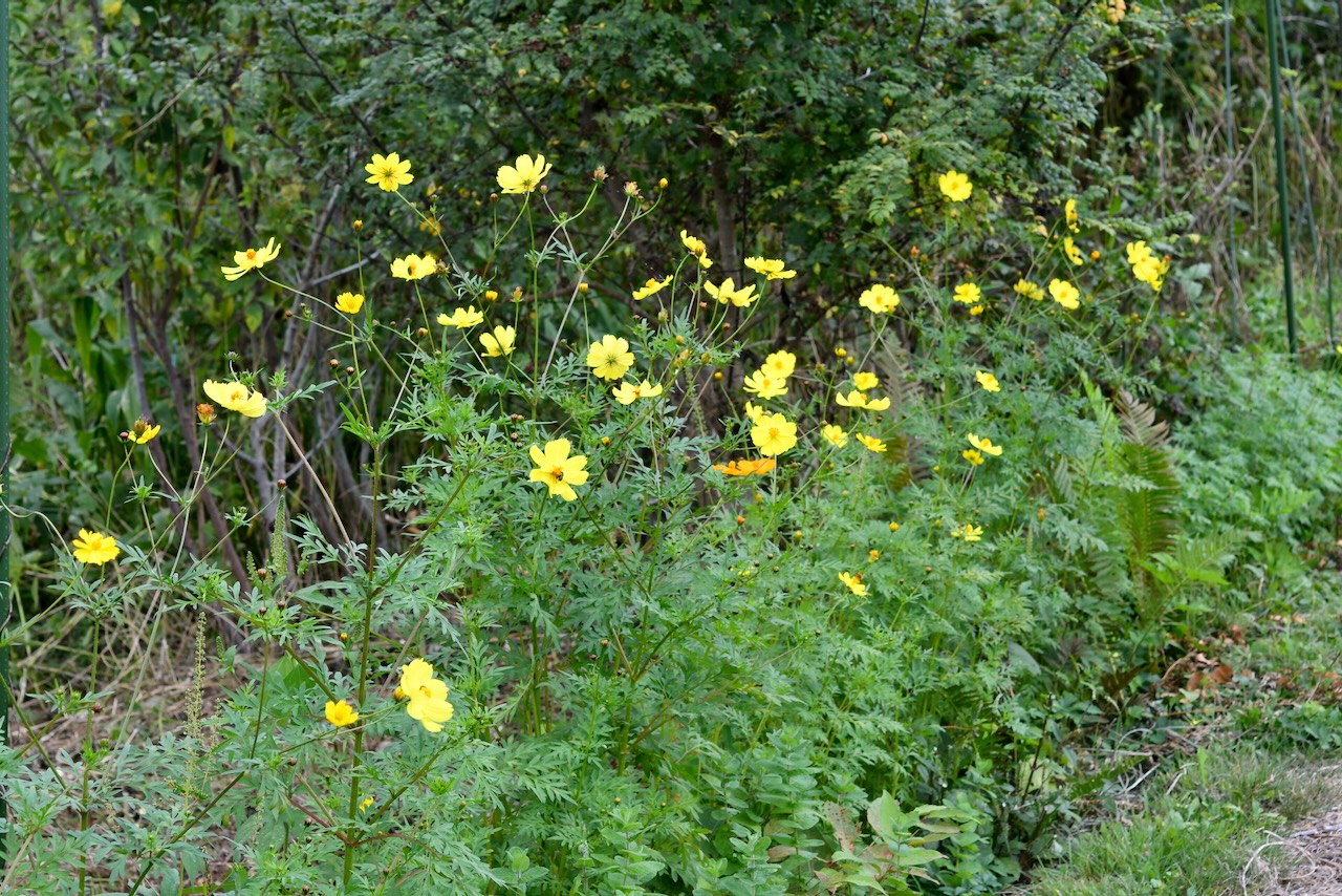 9月30日は宝山にレタス類とハクサイの苗を植えに行きました。作業の後は疲れてしまうので、先に花を撮影をする事にしました。今年種を蒔いた100mゾーンの道路沿いのキバナコスモスです。