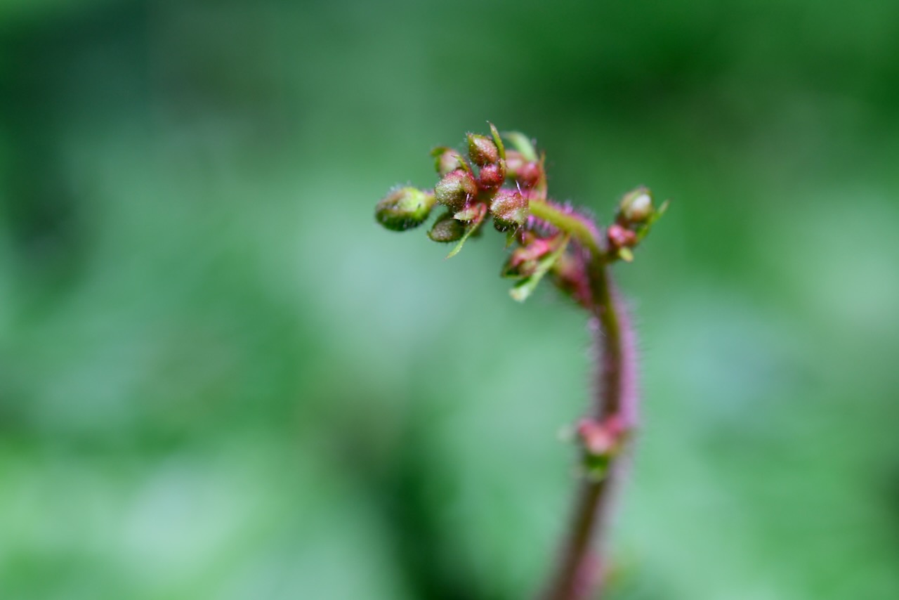 アップで撮るとまだ小さな蕾です。雪の下の花は特徴的な姿で美しいです。毎年楽しみにしています。