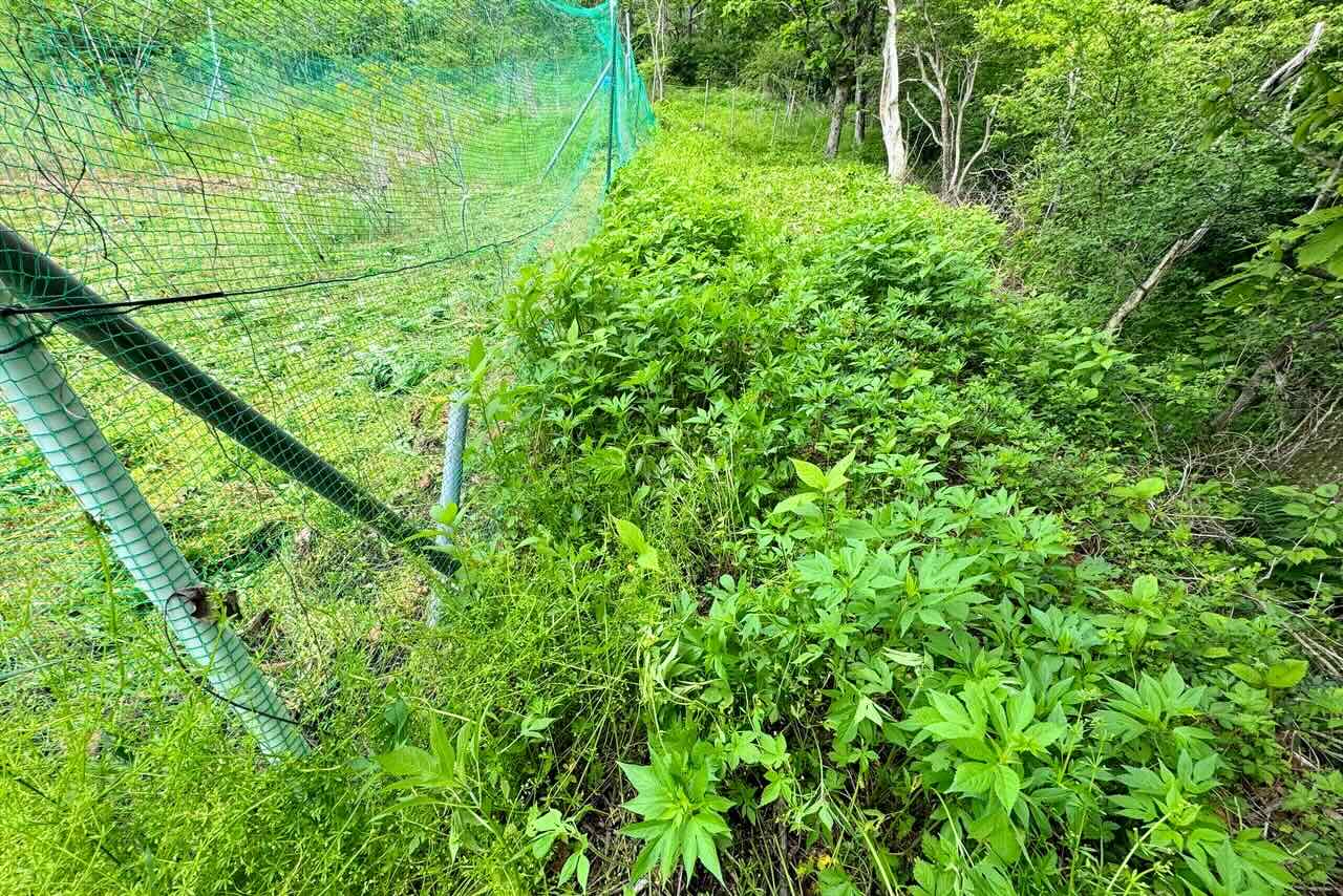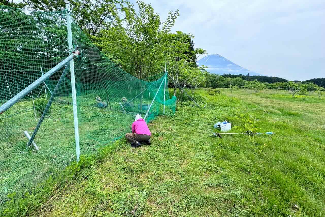 手鎌でネットのきわを刈ってくれるとありがたいです。安心して草刈機を使えます。以前、草刈機でネットのギリギリまで刈った時に、網が草刈機の刃に絡んでしまい取るのが大変でした。