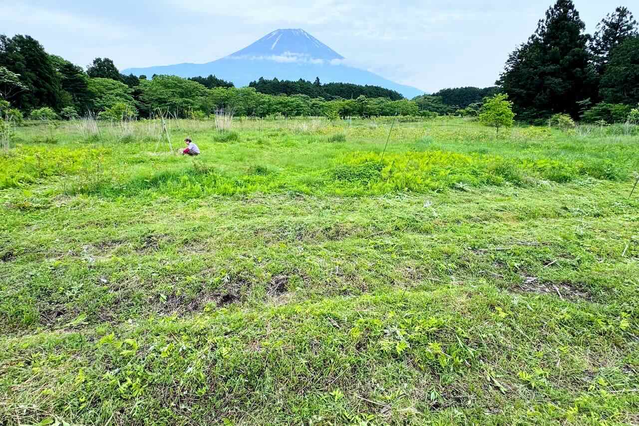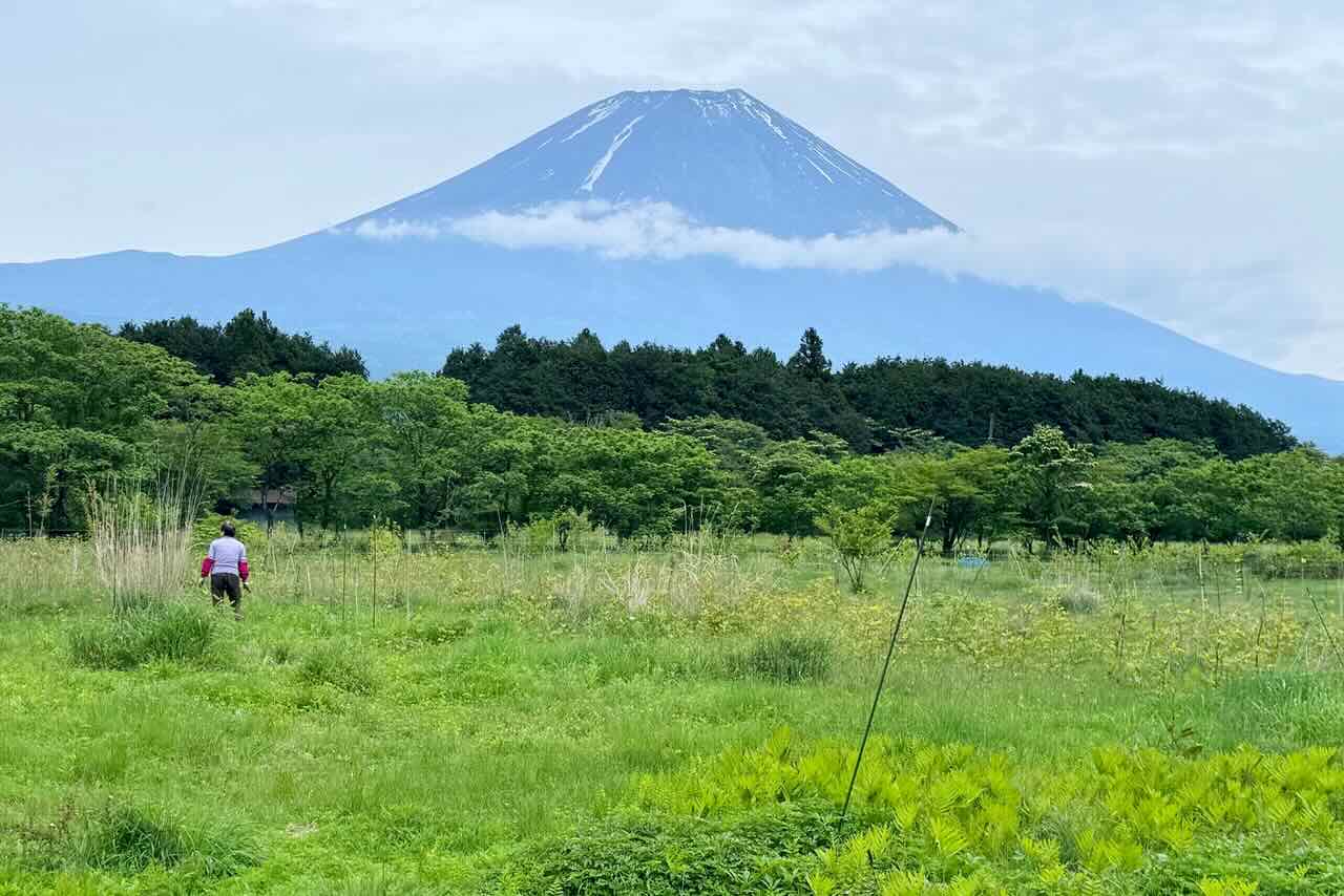 草原に立つ元少女です。富士山に向かってカッコいいです。