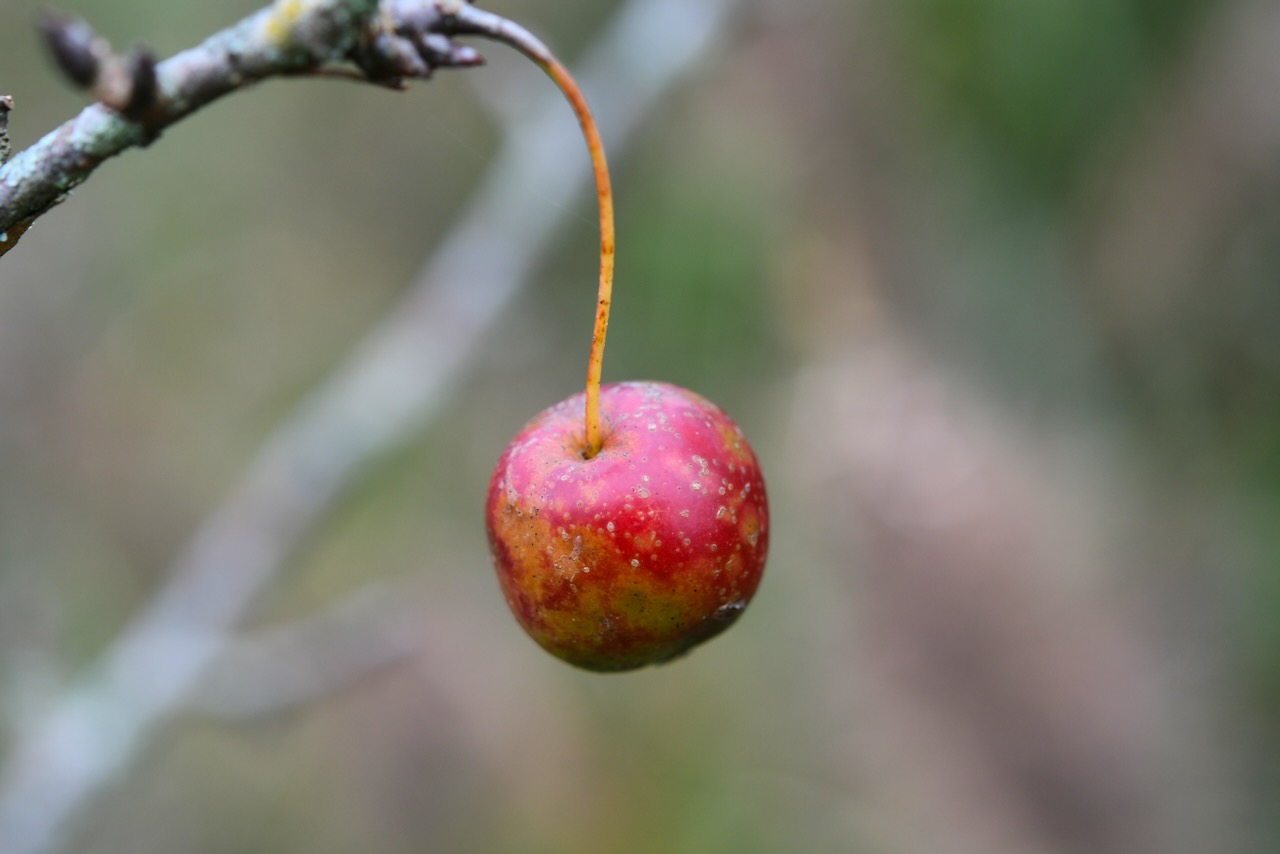 姫リンゴの木に葉っぱはほとんど落ちていましたが、実が6個ほど残っていました。