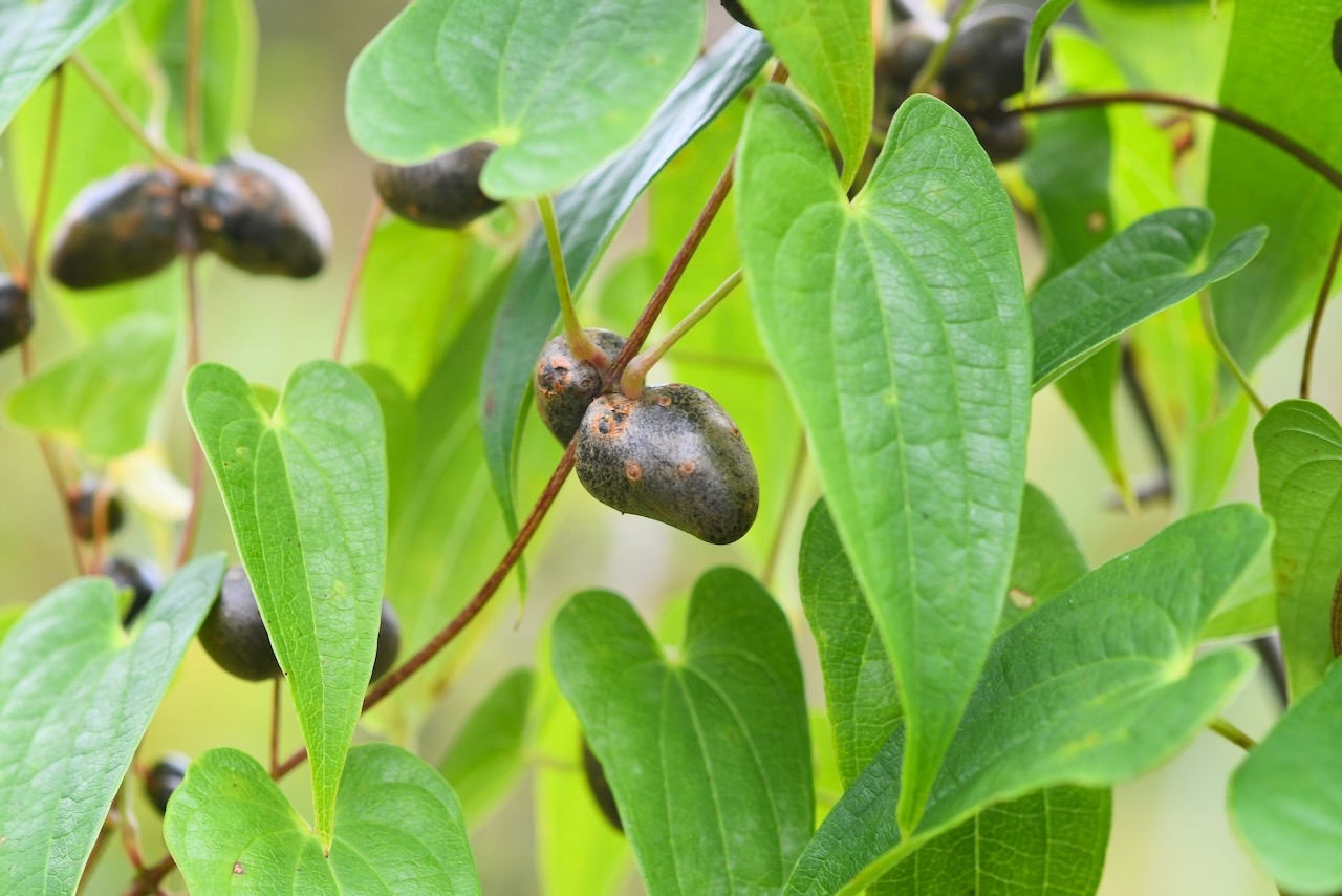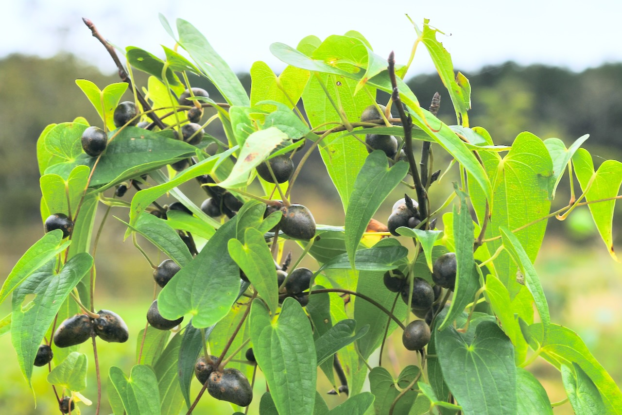この木のムカゴだけで、ムカゴご飯が1回出来ます。触ると下にポロポロ落ちるので、塩谷さんが上で採って私が下に落ちたのを逃さずに拾いました。