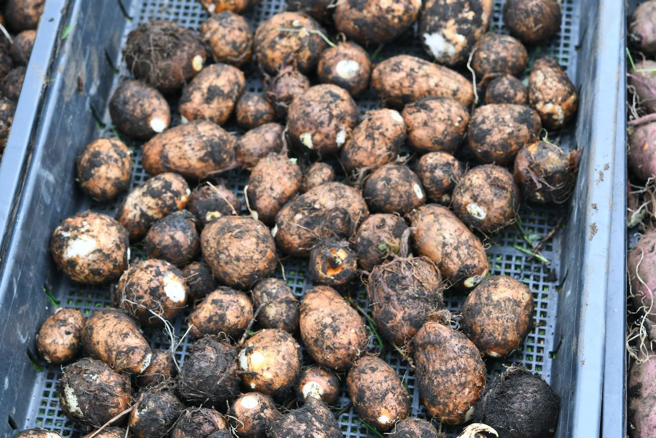 左端は根が付いた部分の芋ですが、種芋用に取りました。