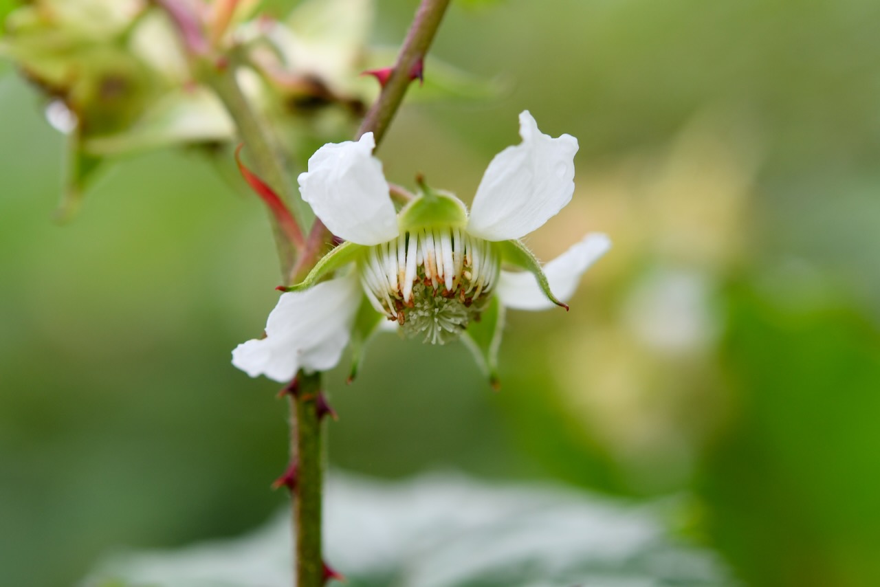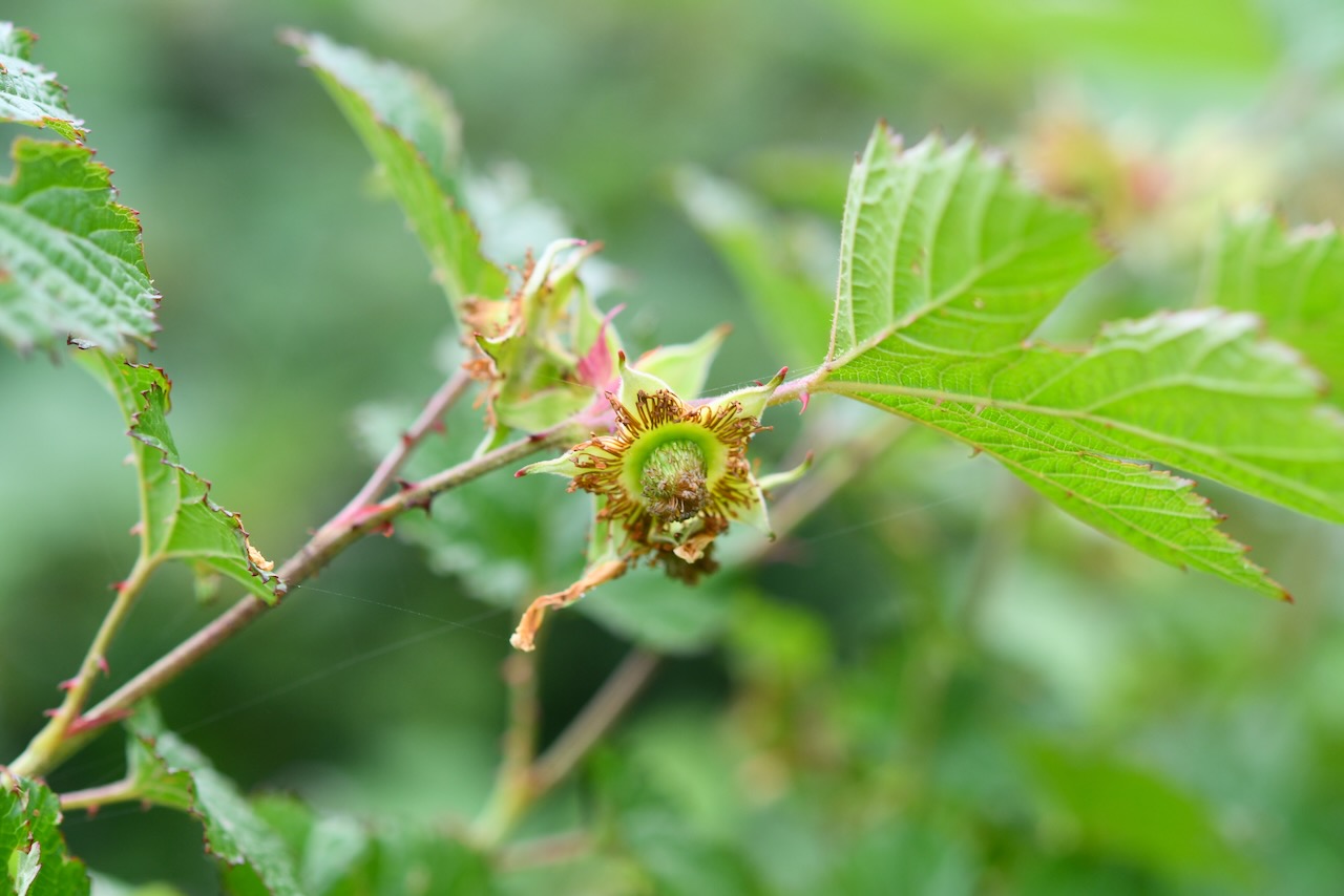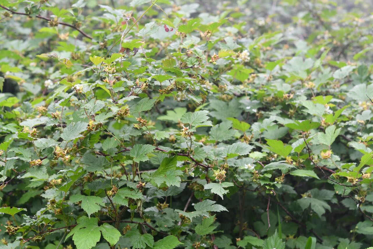 子供プロジェクトと合気道の建物のそばにクマイチゴが群生しています。ほとんどの花は散っていました。