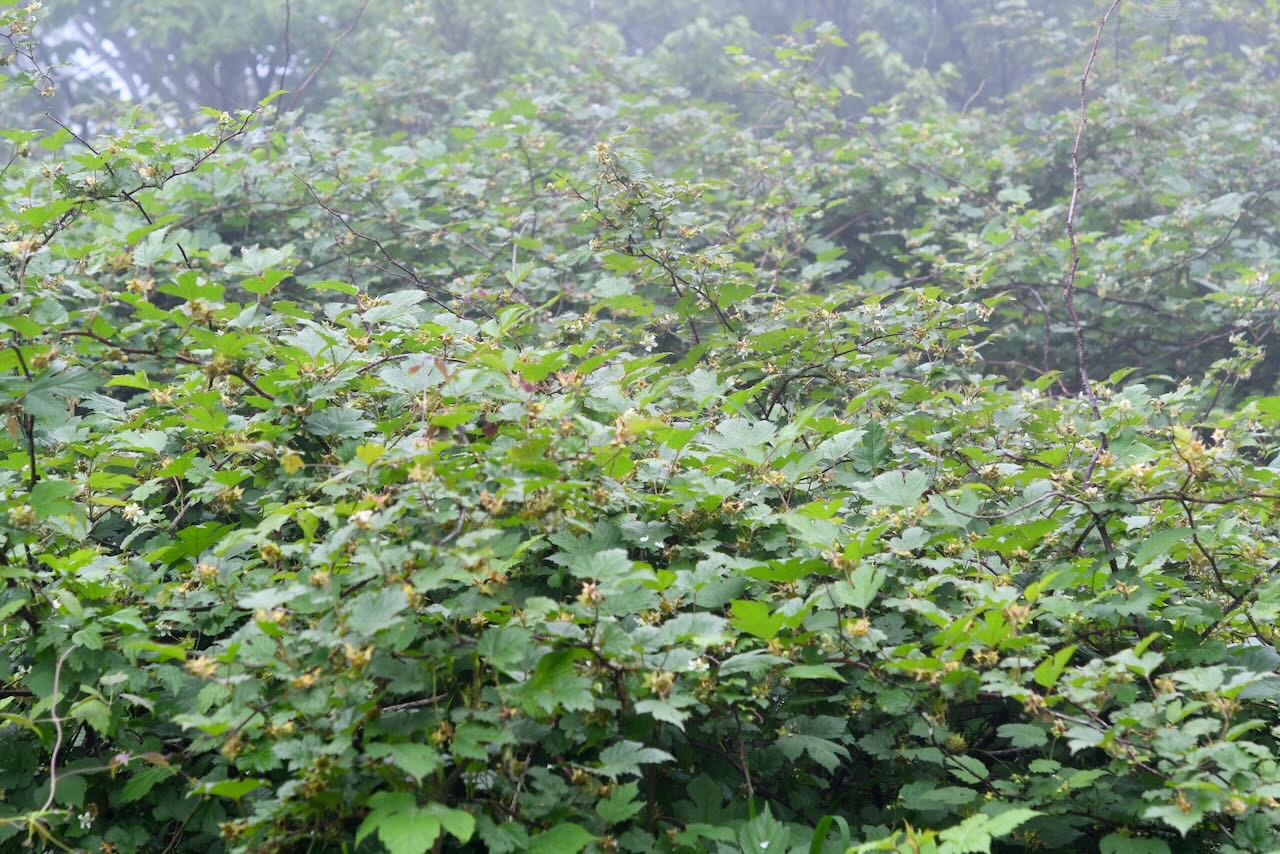 全部クマイチゴです。左右にもっと広がっています。奥の方は高さは3m以上あると思います。こんなに巨大化するのですね。
