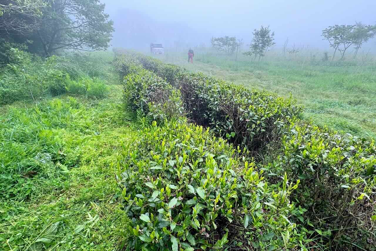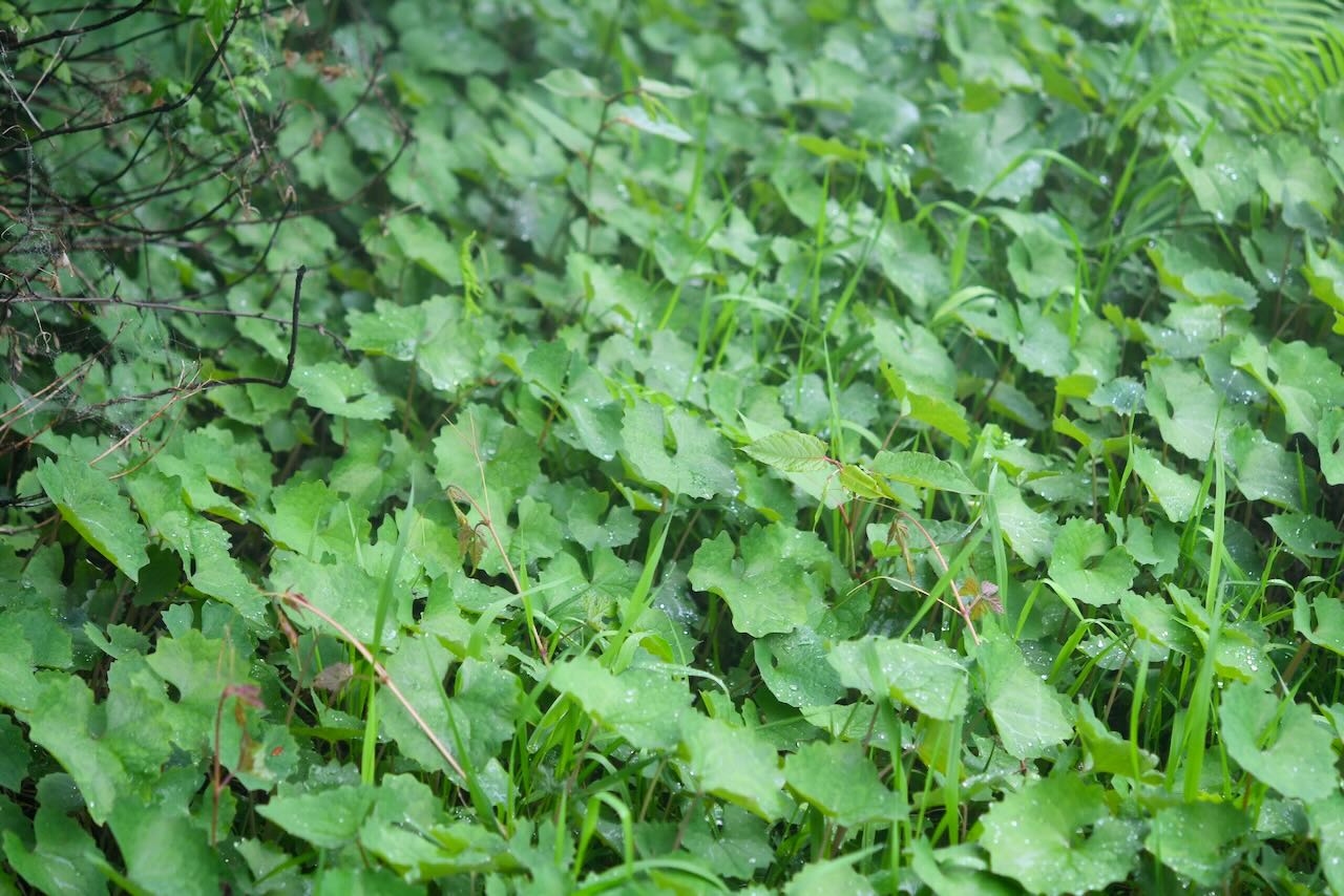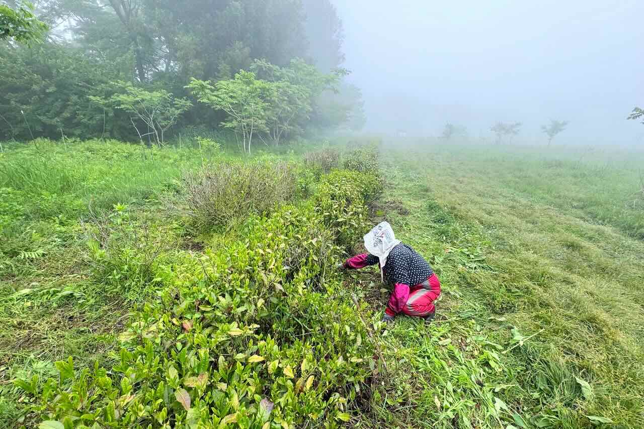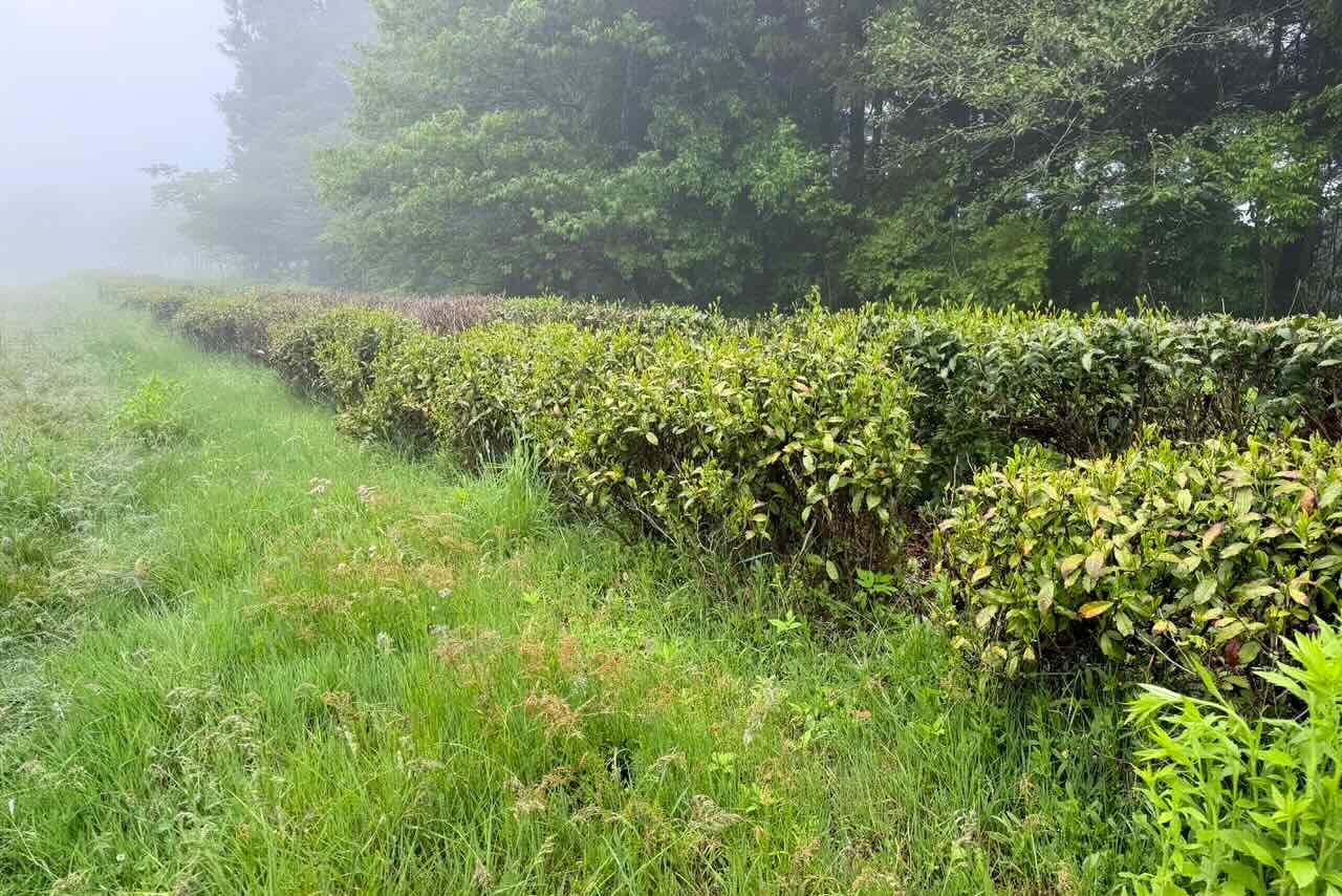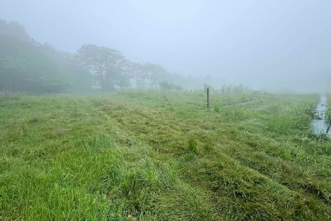 25日、宝山に草刈りに行きました。24日夕方から25日早朝まで結構な量の雨が降り、草原の草はびっしょりと濡れていました。霧も深かったです。
