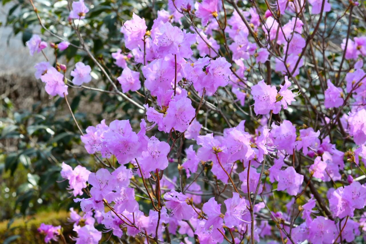 宝山茶の木の剪定。キクザキイチゲ、ゲンカイツツジ、紅梅、ツバキ、クロッカス、菜花、カラスノエンドウ、レンギョウ、ビックリグミ、フタホシヒラタアブ