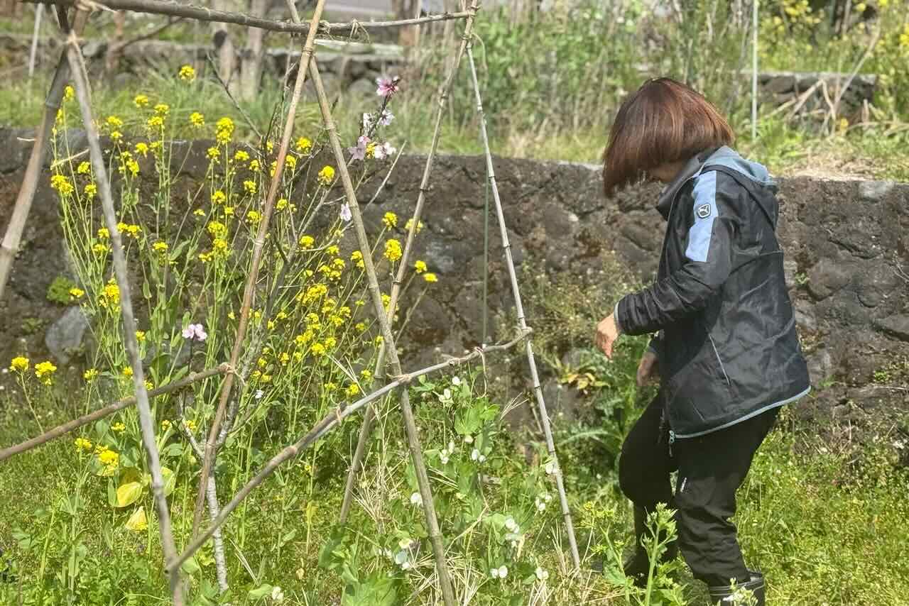 上杉淑さんも自分のスナップエンドウに竹で囲いを作っています。