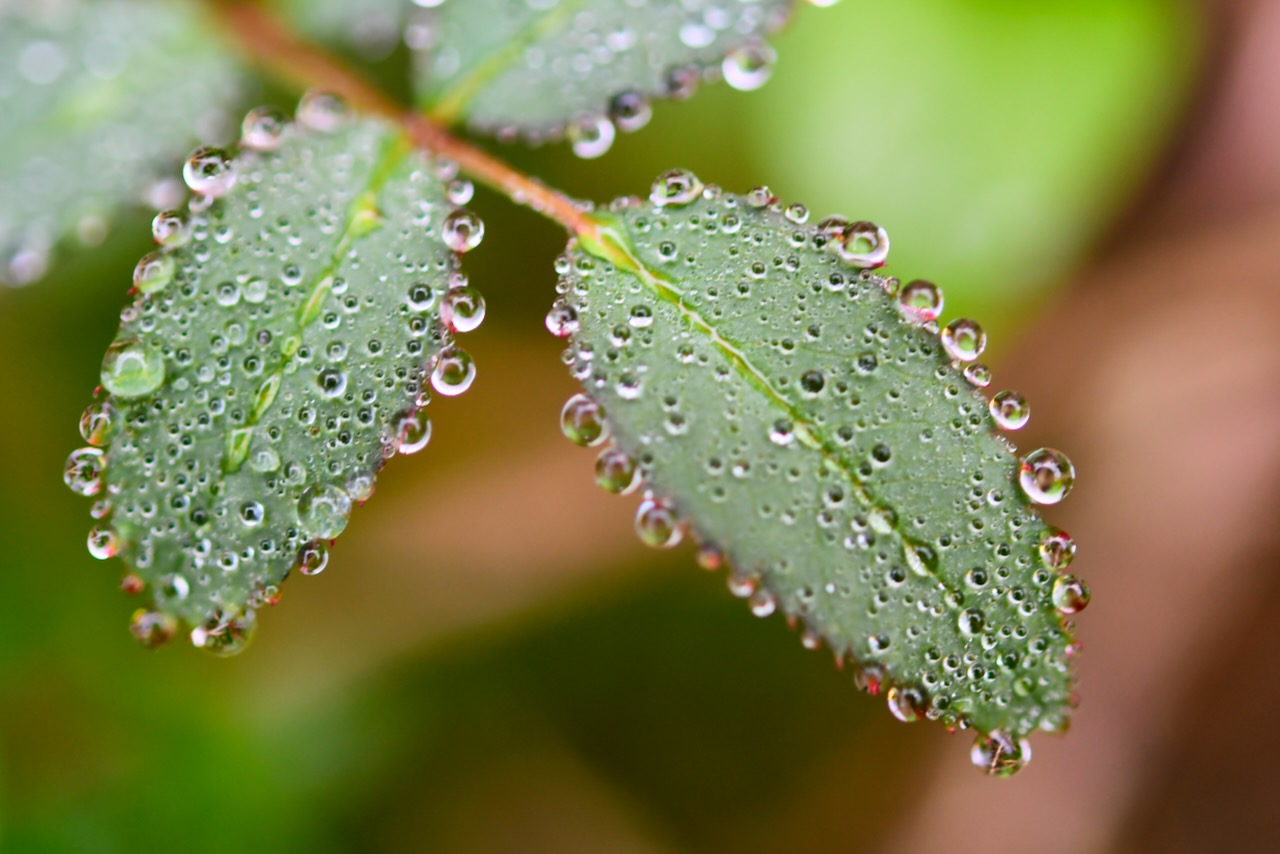 葉っぱに水滴が付いて綺麗だったので撮りました。