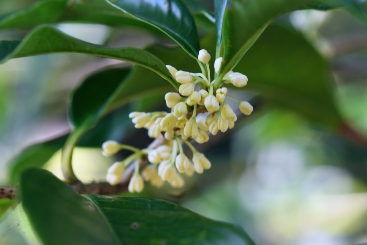 事務棟に寄って印刷をしました。ちょうど宿直の安田さんが居たので、コーヒーを飲んでお話しました。この時期の花は何かありますかと聞くと、本館へ行くスロープの左側に銀モクセイの蕾が出ていると教えてくれました。まだ花には早かったです。