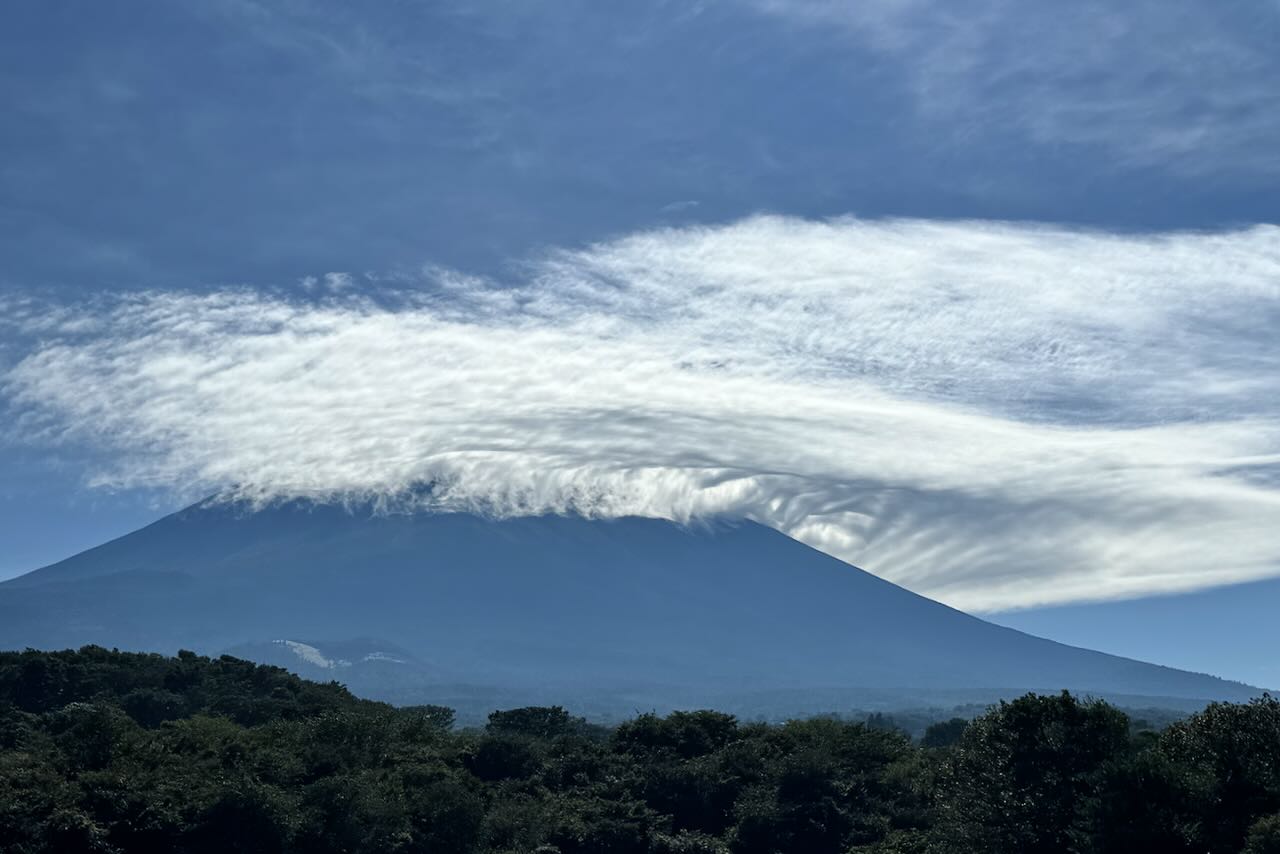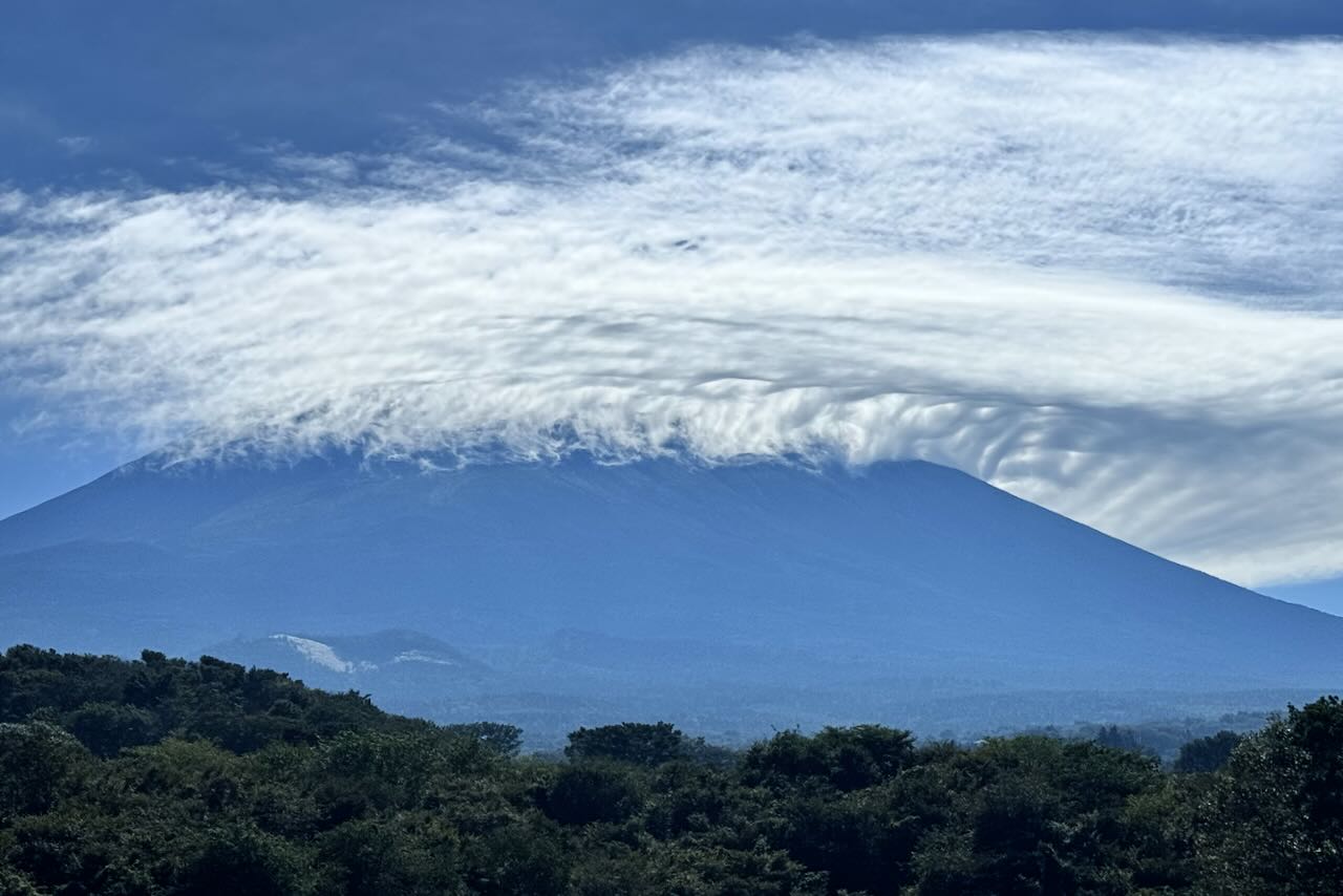 10月2日、富士聖地近くからの富士山です。山頂は雲に覆われていましたが、面白い雲なので撮影しました。