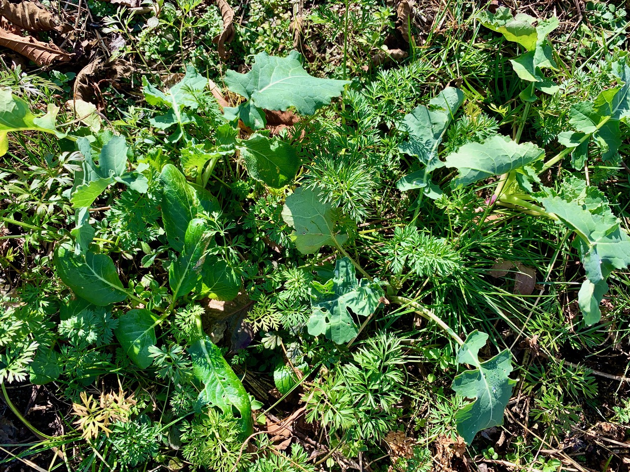 ニンジンと色々。 耕していない林の中の土は草や落ち葉でふかふかでした。